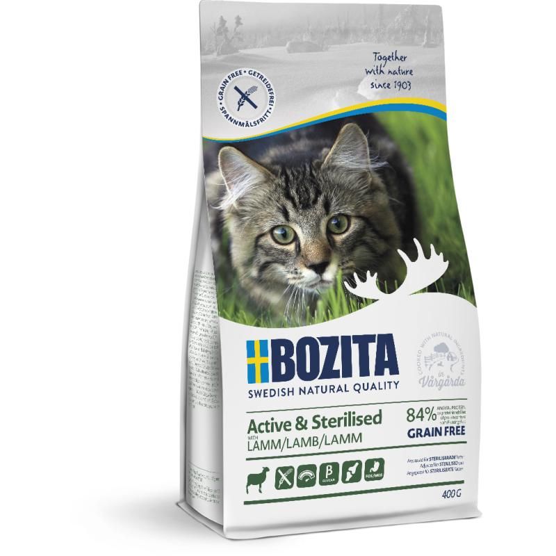 Bozita Active & Sterilised Getreidefrei Lamm ist ein Alleinfuttermittel für die erwachsene Katze. Eine höhere Energiekonzentration ist besonders gut für die aktive Katze geeignet, die zusätzliche Nährstoffe benötigt. Frisch zubereitetes Lamm ist sehr schmackhaft und eignet sich selbst für die wählerischste Katze.