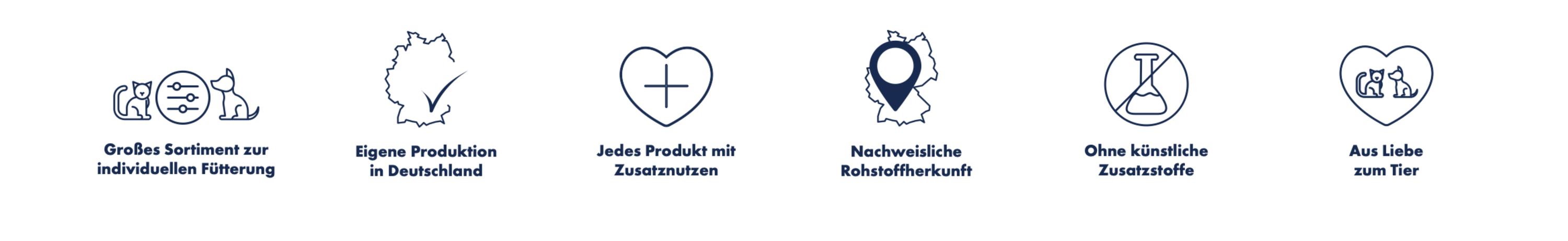 In unserem Sortiment gibt es rund 500 verschiedene Produkte für Hunde und Katzen. Jedes dieser Produkte verfügt über einen individuellen Zusatznutzen.