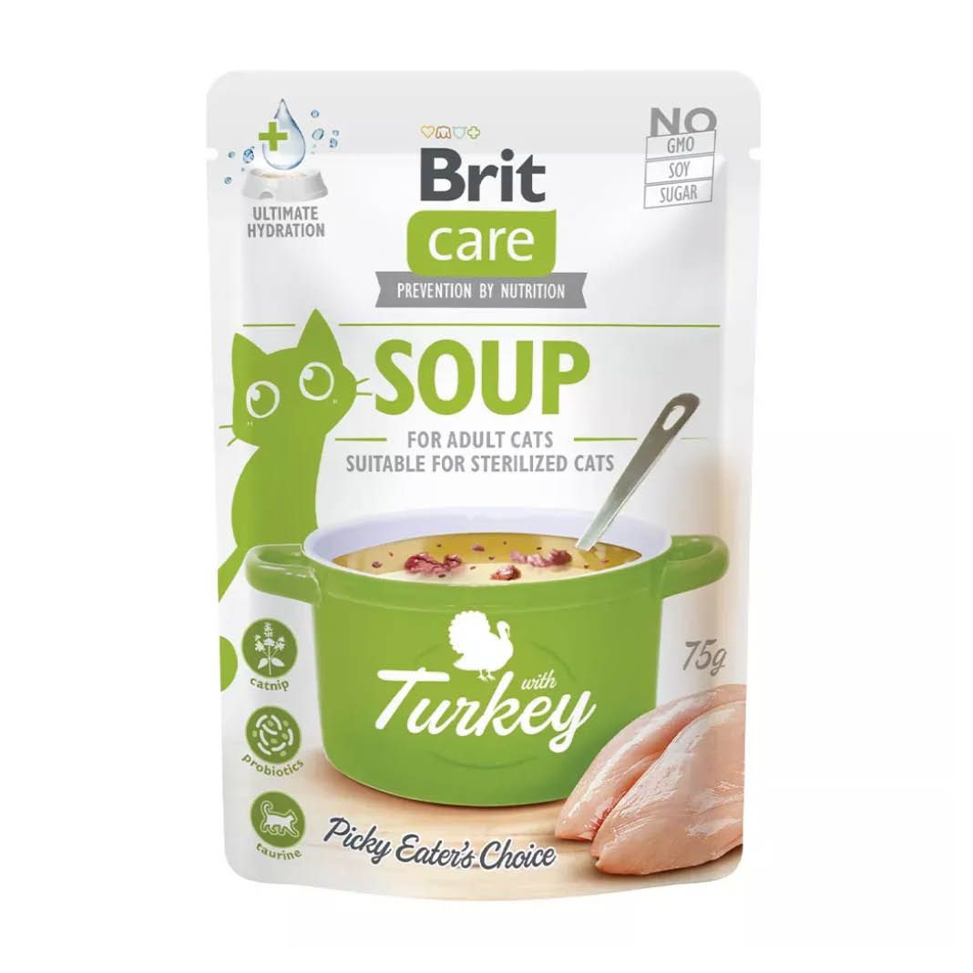 Ergänzungsfuttermittel für erwachsene Katzen, getreidefrei. Geeignet auch für sterilisierte Katzen. Die schmackhaften Suppen von Brit Care Cat sind nicht nur unwiderstehlich lecker für wählerische Feinschlecker, sondern auch reich an wichtigen Nährstoffen wie hochwertigem Protein, L-Methionin für die Harnwegsgesundheit und Taurin für die Sehkraft und Verdauung.