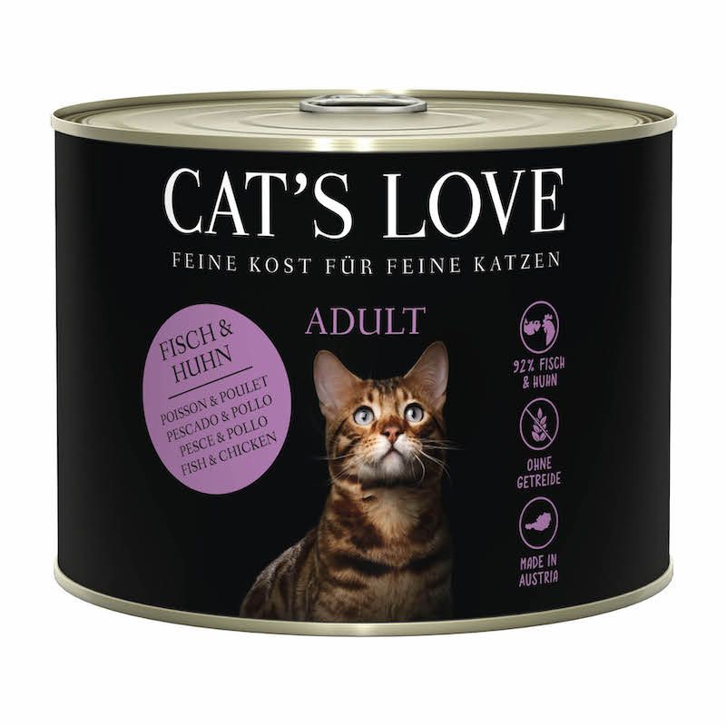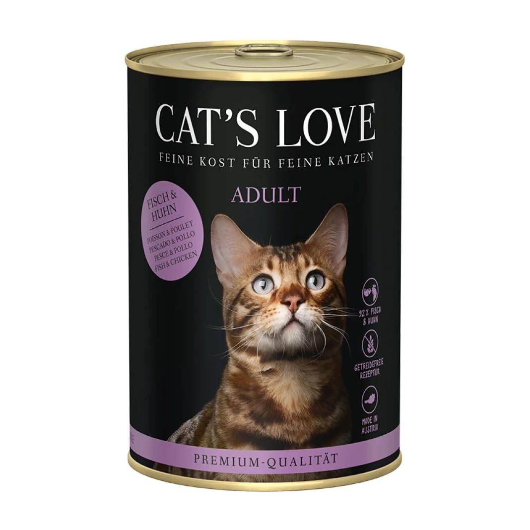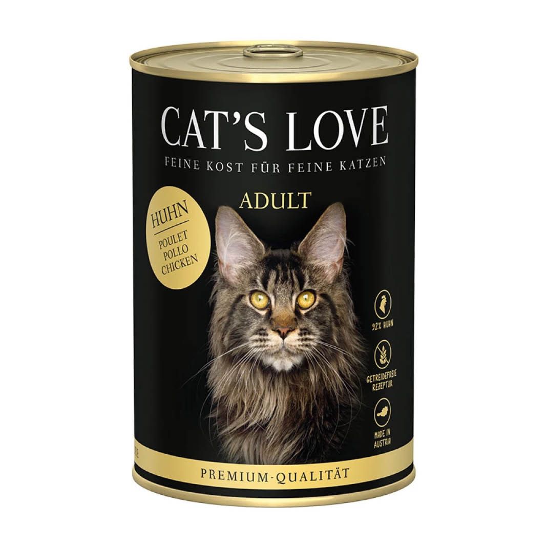 CAT'S LOVE Nassfutter - Premium Alleinfuttermittel für Katzen - optimal an den Nährstoffbedarf Ihrer Katze angepasst. - 100% Premium Qualität aus natürlichen Zutaten - alle Rezepturen sind getreidefrei und leicht verdaulich - mit essentiellen Omega 3 & 6 Fettsäuren, die für ein gesundes und glänzendes Fell sorgen - wertvolle Zusätze von Vitaminen & Taurin erfüllen die ernährungsphysiologischen Ansprüche ihrer Katze - Ohne: Getreide, Zucker, sythetische Geschmacksverstärker, Konservierungsstoffe und chemische Zusätze