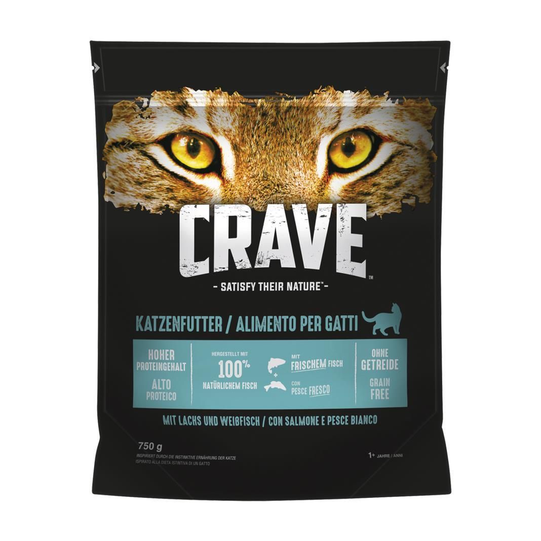 CRAVE™ weiß, dass Katzen den Geschmack und die Nährstoffe eines Katzenfutters mit hohem tierischen Proteinanteil benötigen - aus einem einfachen Grund. Proteinreiche Katzennahrung liefert die Nährstoffe für eine starke Katze und versorgt sie mit ausreichend Energie zum Spielen. Ähnlich wie die Nahrung ihrer Wildkatzen-Vorfahren, werden CRAVE™-Rezepturen stets mit hochwertigen tierischen Proteinen und ohne Zusatz von Getreide gefertigt. So entsteht Katzentrockenfutter mit dem Geschmack, den Katzen lieben. CRAVE™ Adult-Trockenfutter mit Lachs & Weissfisch ist ideal für ausgewachsene Katzen. Das hochwertige Katzenfutter wird mit 100% natürlichem Fisch und ohne Getreide hergestellt, um sich an der natürlichen Ernährungsweise deiner Katze zu orientieren. CRAVE™ Katzenfutter wird mit frischem Fisch hergestellt, um einen hohen Proteingehalt sicherzustellen. Katzennahrung aus Rezepturen mit hohem Proteingehalt tragen zur Unterstützung starker Muskeln bei Katzen bei.