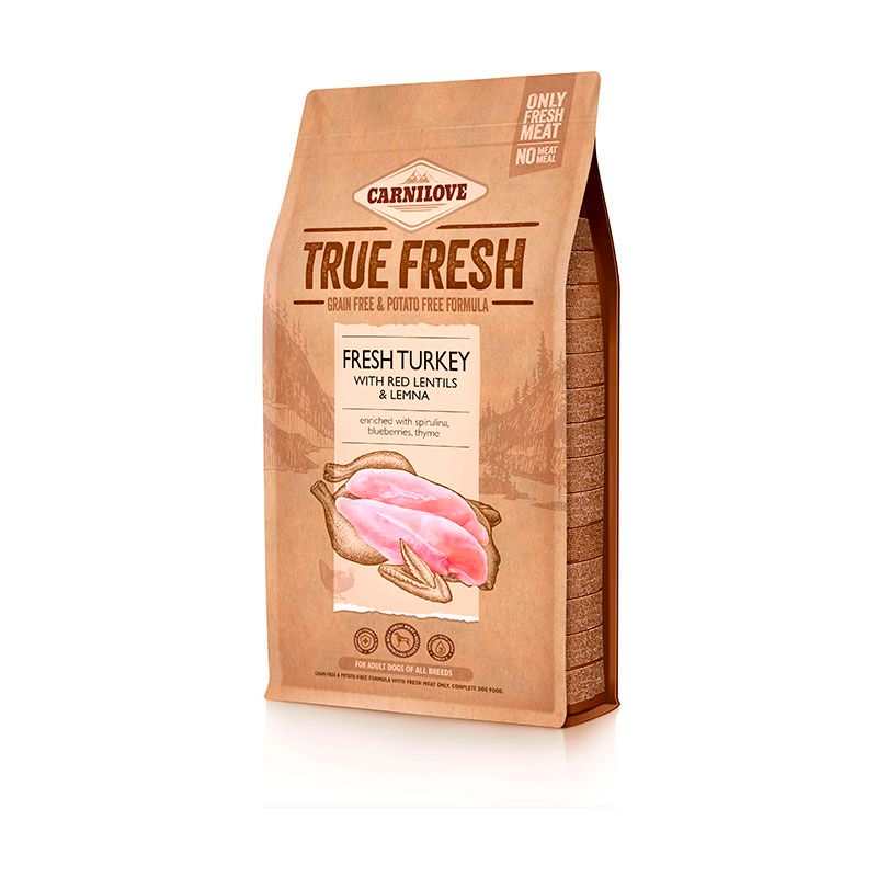frischer Truthahn (60 %), Erbsen, Hühnerfett (konserviert mit Tocopherolen), Kichererbsen, getrocknete Äpfel, rote Linsen (4 %), Kürbis, natürliche Aromen, Lachsöl (2 %), Karotten, getrocknete Eierschalen, Lemna-Protein (0,5 %), Spirulina (0,3 %), getrockneter Sanddorn (0,2 %), getrocknete Ingwerwurzel (0,1 %), getrocknete Heidelbeeren (0,1 %), getrockneter Rosmarin (0,1%), getrocknete Preiselbeeren (0,1 %), getrockneter Thymian (0,1%), Glucosamin (0,026 %), Grünlippmuscheln (0,025 %), Chondroitinsulfat (0. 016%), Bierhefe (Quelle für Mannan-Oligosaccharide, 0,015 %), Zichorienwurzel (Quelle für Fructo-Oligosaccharide, 0,01 %), Mojave-Yucca (0,01 %).