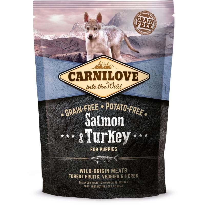 Hochwertige Nahrung mit hohem Gehalt an essentiellen Aminosäuren, Vitaminen und Mineralstoffen sind für das gesunde Wachstum von Welpen von entscheidender Bedeutung. Carnilove Puppy wurde so zusammengestellt, dass es der ursprünglichen natürlichen Ernährung von Hunden und ihrem genetischen Vorfahren, dem Wolf, möglichst nahe kommt. Seine Ernährung bestand vorwiegend aus Muskelgewebe, Innereien und Knochen der Beute, ergänzt durch die richtige Menge an Wildbeeren, Gemüse und Kräutern. Alle diese Bestandteile sind wesentlich für die gesunde Entwicklung der Knochen, Gelenke und Muskeln. Lachsfleisch und -öl liefern die Omega-Fettsäuren, die für den gesunden Zustand von Haut und Fell und die optimale Entwicklung des Nervensystems notwendig sind.