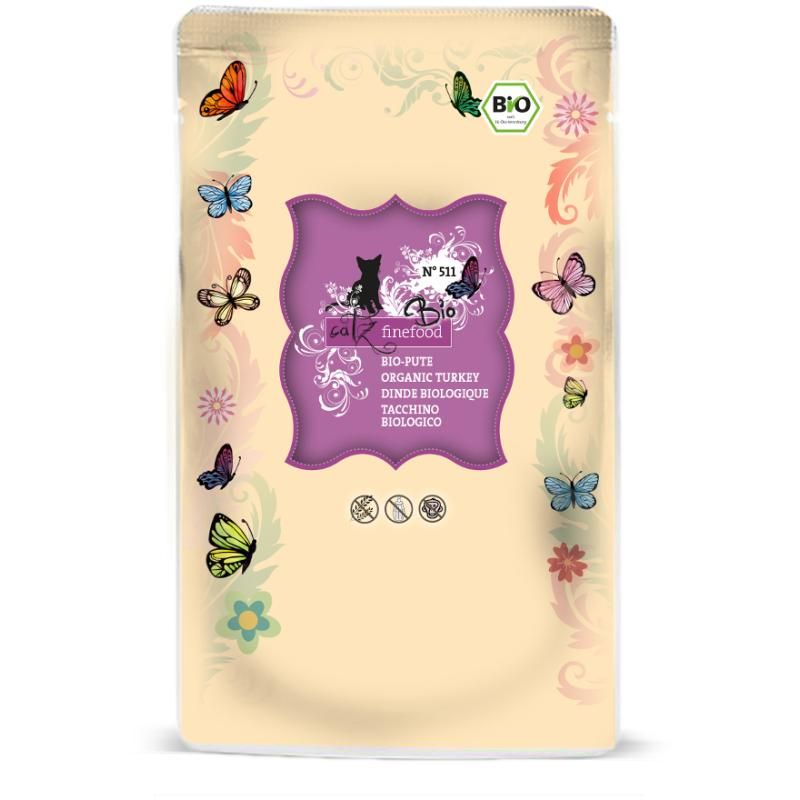 Ernähren Sie Ihre Katze natürlich mit bio-zertifizierten Zutaten! Mit den schmackhaften Sorten unserer catz finefood Bio-Linie servieren Sie Ihrer Katze eine ganz besondere Mahlzeit.