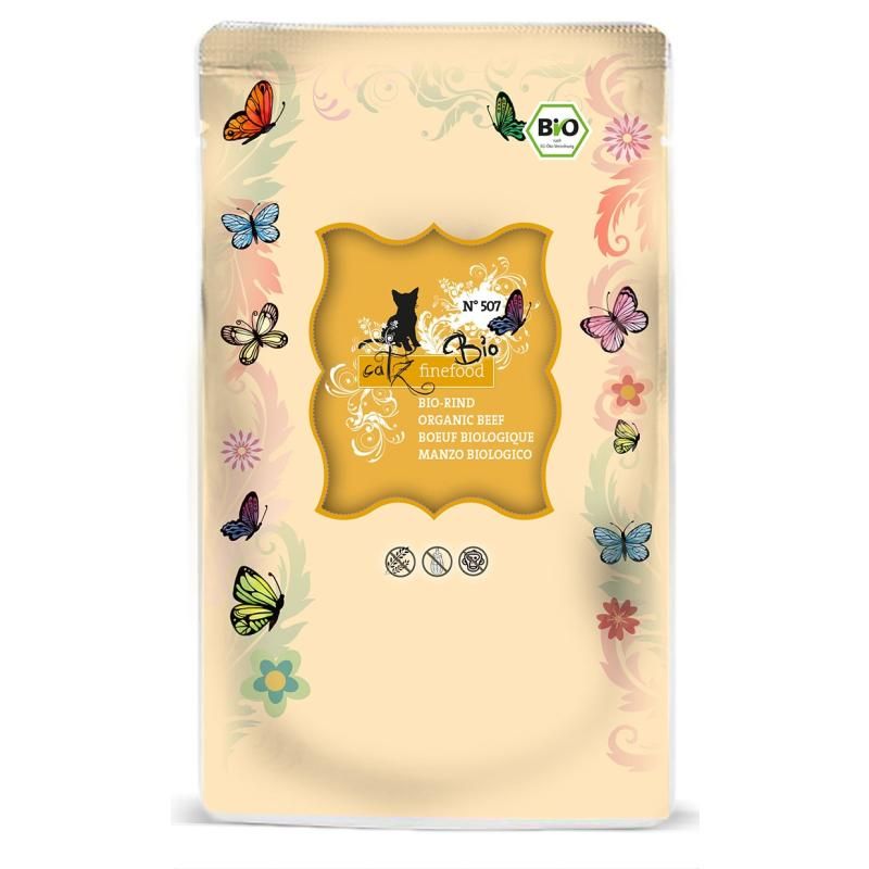 Durch die Bio-Zertifizierung wird gewährleistet, dass alle Zutaten aus zertifizierter ökologischer Tierhaltung, beziehungsweise sämtliche Obst- und Gemüsezutaten aus zertifiziertem ökologischen Anbau stammen. Ein Höchstmaß an Qualität, so wie der Verzicht auf präventive Antibiotikagaben, Wachstumsbeschleunigern, synthetische Pestiziden und Düngemitteln ist somit garantiert. catz finefood Bio – natürlicher geht es kaum!