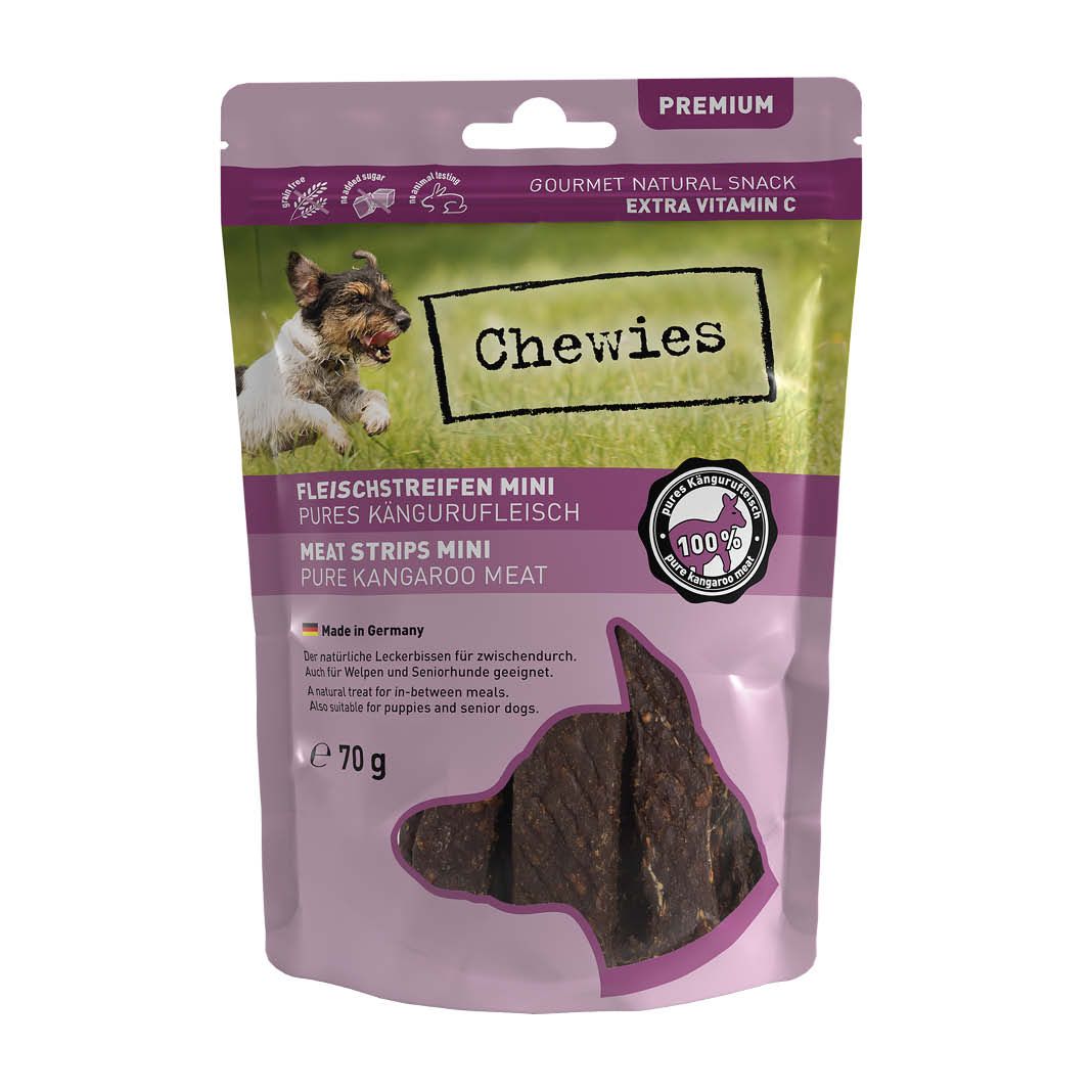 Als beliebter Snack für zwischendurch zaubern sie deiner Fellnase Zufriedenheit ins Gesicht. Von unseren Chewies Fleischstreifen gibt es zehn leckere Sorten in zwei Größen, MINI und MAXI, damit wirklich jeder Hund in den Genuss kommen kann. Welpen und die grauen Schnauzen lieben den aromatischen Fleischsnack ebenso, denn er kann ganz einfach in kleinere Stücke zerteilt werden.