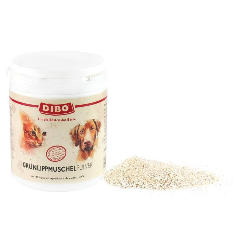 Nahrungsergänzungsmittel Grünlippmuschelpulver – Zusatz zur ausgewogenen Fleischfütterung, Feuchtfütterung und Futterergänzung. Grünlippmuschelpulver hat eine hohe natürliche Konzentration (2 % bis 4 %) an Glucosamin und Chondroitin, somit optimal für den Aufbau von Knorpel, Knorpelschmierung, Gelenke, Sehnen und Bänder.
