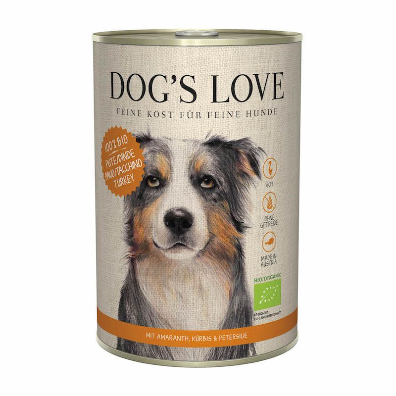 Natürliches Alleinfuttermenü in 100 % zertifizierter Bio-Lebensmittelqualität aller Rohstoffe für ausgewachsene Hunde. Gänzlich mit Gemüse und Obst aus biologisch kontrolliertem Anbau sowie Fleisch aus biologisch artgerechter Haltung hergestellt, ist auch unser DOG'S LOVE Bio Menü optimal an den Nährstoffebdarf Ihres Hundes angepasst.