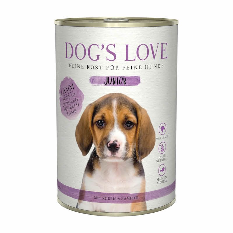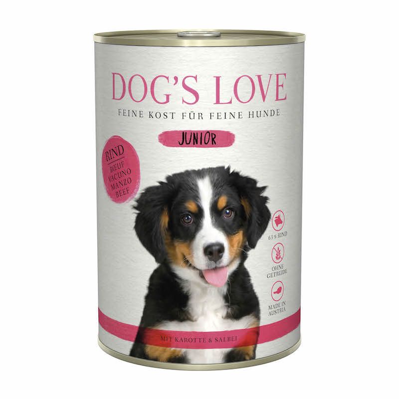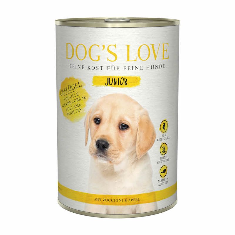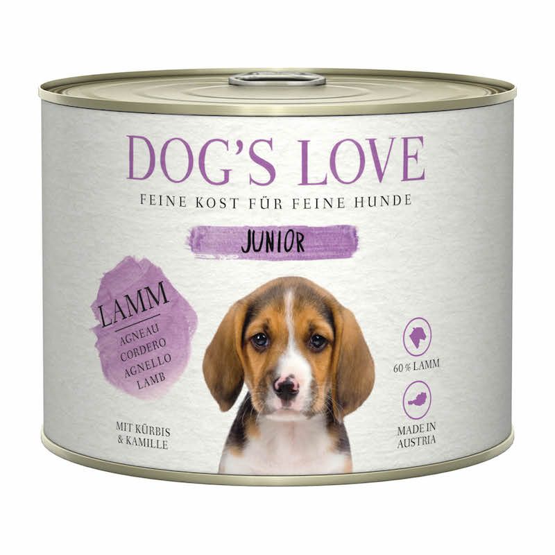 Die natürlichen und artgerechten JUNIOR-Sorten aus dem DOG'S LOVE Sortiment sind speziell auf die Bedürfnisse von jungen Hunden im Alter von 6 Wochen bis 12 Monaten abgestimmt.