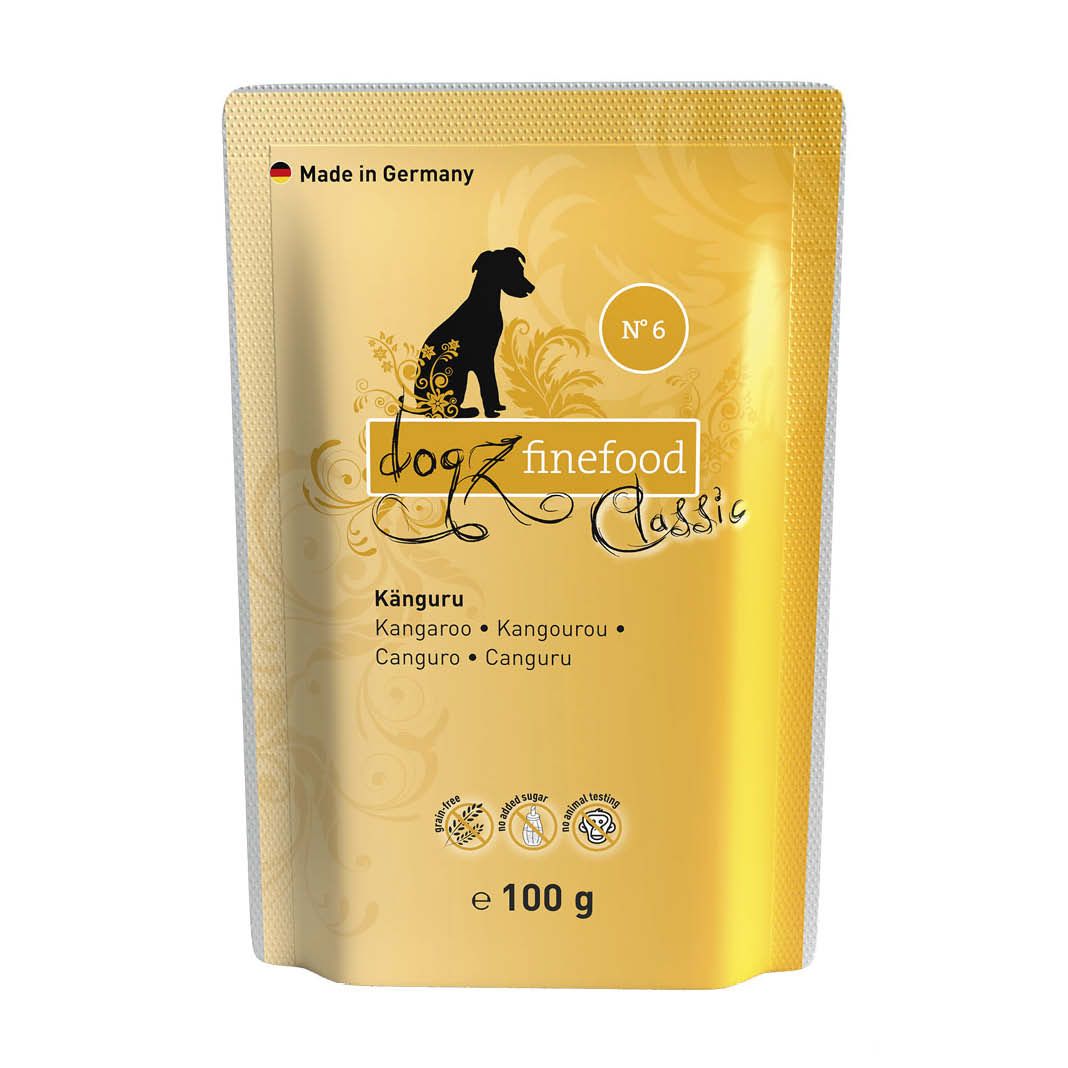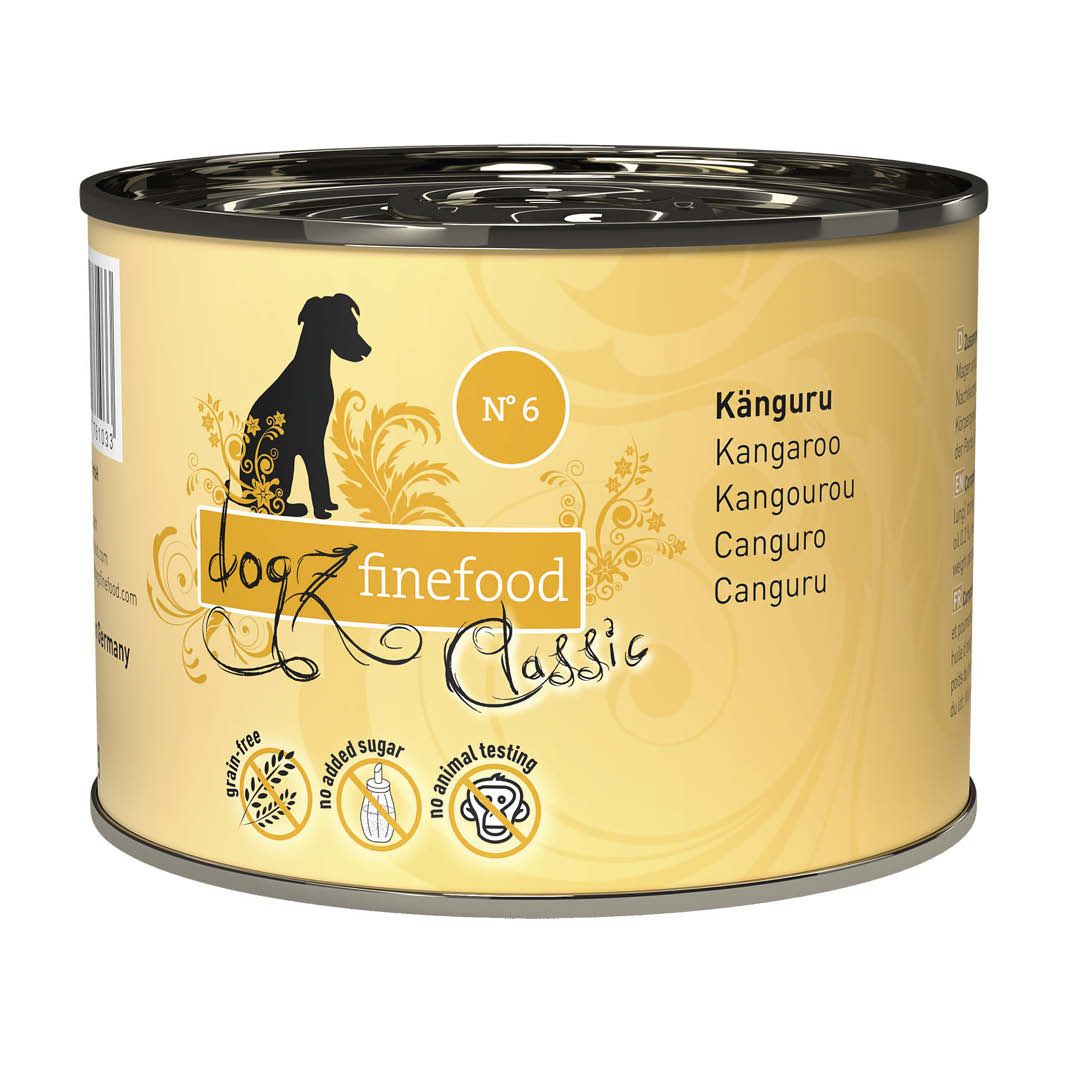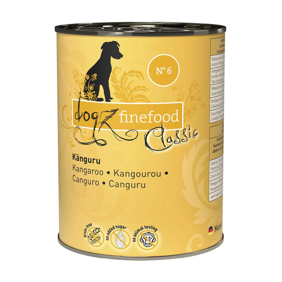 Känguru 65 % (bestehend aus Herz, Leber, Magen und Lunge), Trinkwasser 27,7 %, Kartoffel 6 %, Mineralstoffe 1 %,Nachtkerzenöl 0,2 %, Hagebutte 0,1%