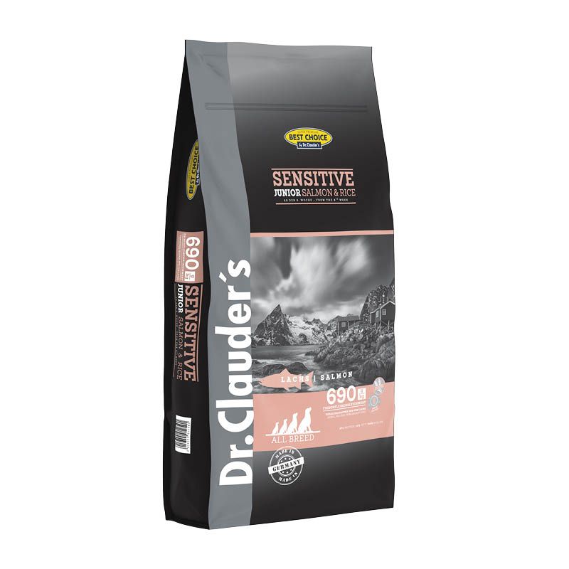 Dr.Clauder´s Best Choice Junior Lachs & Reis ist perfekt geeignet für junge und heranwachsende Hunde mit Futtermittelempfindlichkeit und Appetitlosigkeit. Dr.Clauder´s Best Choice Junior Lachs & Reis ist: - optimal verdaulich durch präbiotisch wirkende Ballaststoffe (FOS). - sehr bekömmlich und allergenreduziert durch hochwertige tierische und pflanzliche Single-Eiweißquellen. Mit einem Komplex aus Mannanoligosaccharide (MOS), Fructo-Oligosaccharide (FOS) und Hefe-Beta-Glucane. Kann sich positiv auf die sensible Darmflora des Junghundes auswirken. Die Immunkräfte können so gestärkt werden und ermöglichen ein gesundes Aufwachsen. Dr.Clauder`s Junior Lachs & Reis ist frei von Weizen und Konservierungsstoffen.