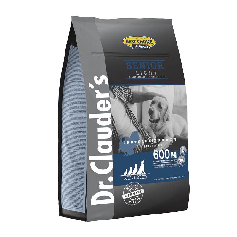 Dr.Clauder's Senior / Light ist perfekt geeignet für alle Hunde, deren Energiebedarf geringer ist. Darunter fallen ältere Hunde, da deren Stoffwechsel langsamer arbeitet sowie Hunde, die für ein optimales Gewichtsmanagement eine reduzierte Energieversorgung benötigen. Dr.Clauder's Senior / Light sorgt durch die Energieminderung dafür, dass der Hund keine Überschussenergie in Fett umwandelt. Optimale Verdaulichkeit durch natürliche, prebiotisch wirkende Ballaststoffe (FOS) aus Chicoreé. Unterstützung der Immunkräfte durch Hefe-Beta-Glucane. Dr.Clauder's Senior / Light ist besonders schmackhaft und lecker und wird von Hunden sehr gerne angenommen. Durch die abgestimmte Rezeptur und den hohen Anteil an Rohfasern bleibt ihr Hund lange satt und zufrieden. Dr.Clauder's Senior / Light enthält einen Komplex aus Glucosamin und Ginseng für starke Knochen und Gelenke und ein starkes, vitales Immunsystem. Best Choice Senior / Light ist frei von Weizen, Mais und Konservierungsmitteln. 1kg Trockenfutter entspricht dem Nährwert von 600g Frischfleisch.