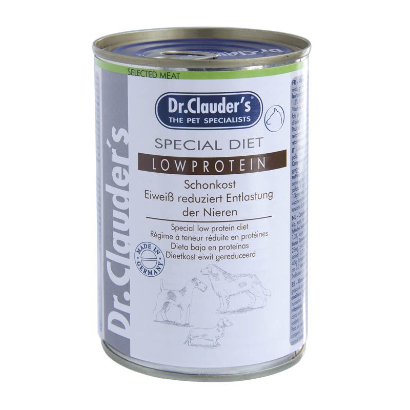 Dr. Clauder's Low Protein Schonkost Eiweiß reduziert wurde entwickelt, um Hunden eine Vollnahrung mit einem reduzierten Eiweißgehalt bei zugleich erhöhten Fettgehalt anzubieten. Ein hoher Eiweißgehalt kann die Nieren belasten. Die leicht verdauliche Kost hat einen niedrigen Phoshor- und Natriumgehalt. Dieses schonende Alleinfutter kann eine sinnvollen Nahrung zur Entlastung sein. Hunde mit akuten Nierenproblemen sollten dem Tierarzt vorgestellt werden.