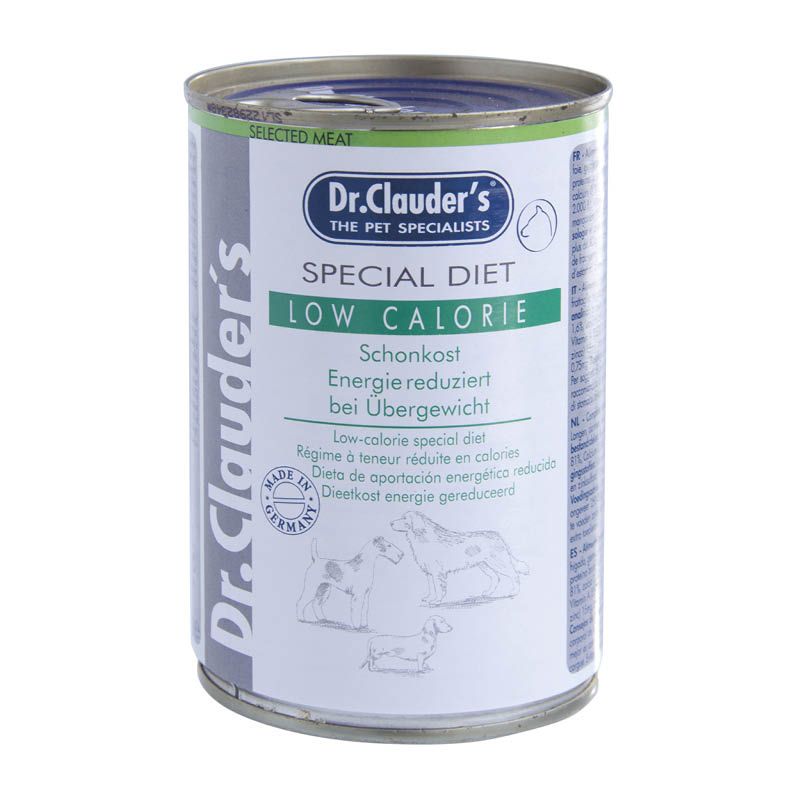 Dr. Clauder's Low Calorie Schonkost Energie reduziert wurde für Hunde mit Übergewicht entwickelt. Gegenüber der üblichen Vollnahrung wurde der Energiegehalt deutlich gesenkt und zugleich der Anteil an Ballaststoffen erhöht, um Hungergefühlen entgegen zu wirken. Hunde mit extremem Übergewicht sollten dem Tierarzt vorgestellt werden