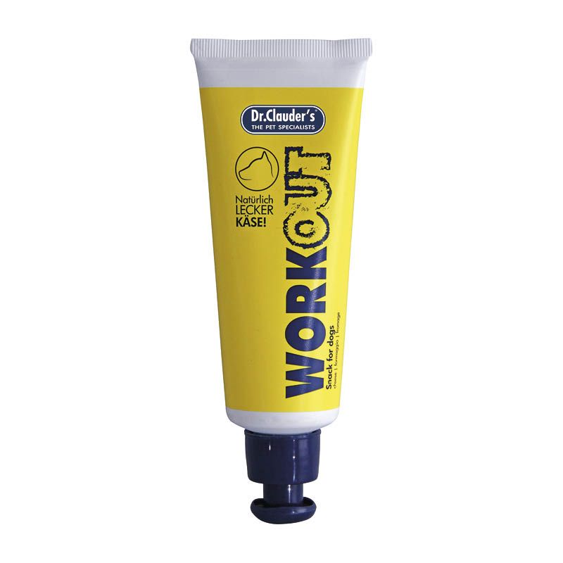 Perfekt fürs Training - mit praktischem Applikator. Typ "Käse". Dr.Clauder's Work-Out Snack Käse eignet sich hervorragend als Belohnung im Training, bei der Erziehung oder einfach nur zum Verwöhnen. Der praktische Applikator macht die Darreichung zum Kinderspiel. Einfach ein kleine Menge ablecken lassen - deshalb auch optimal für Agility.