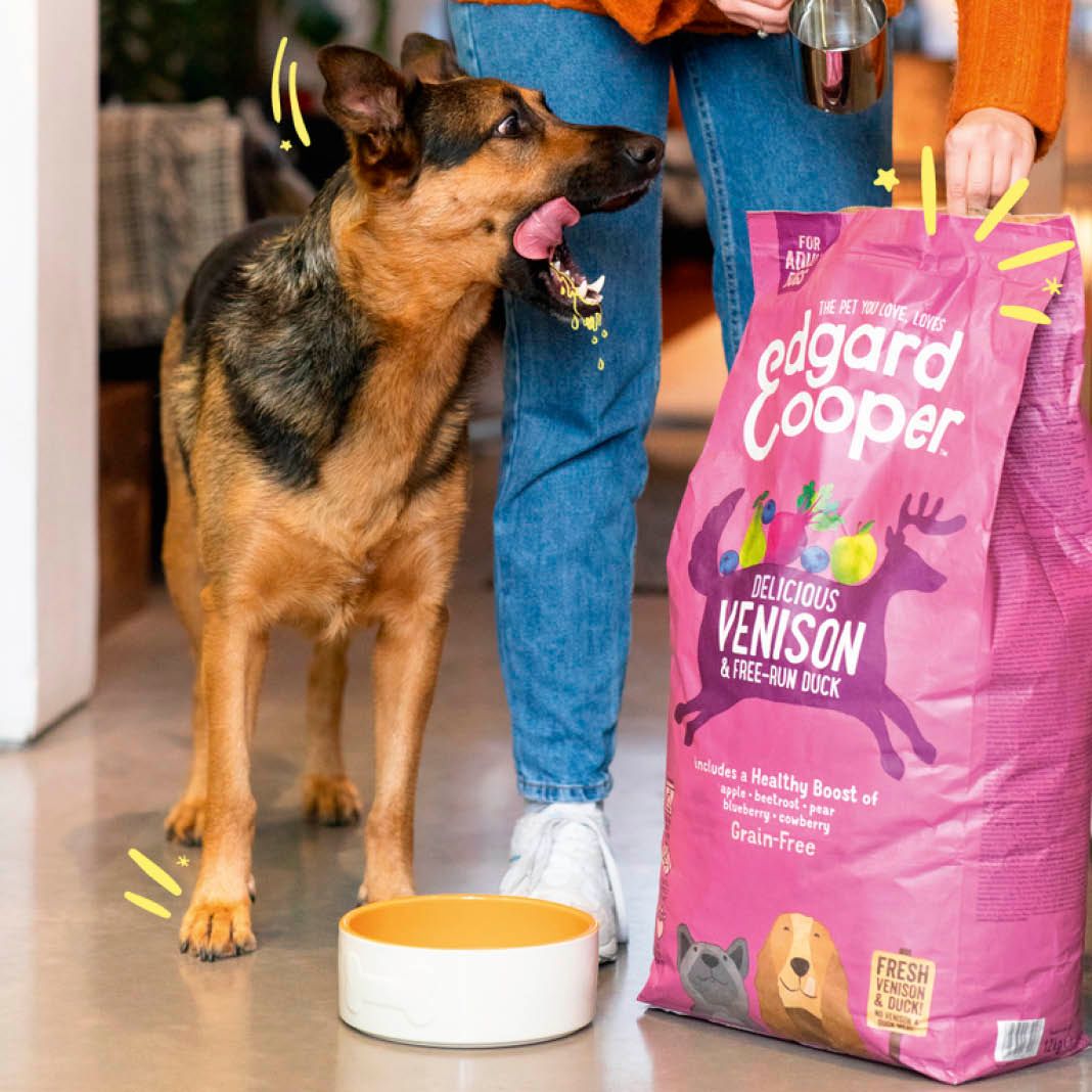 Dieses Trockenfutter mit frischem Wild und Freiland Ente liefert hochwertiges Protein (ohne getrocknetes oder dehydratisiertes Fleisch). Es ist hypoallergen und daher perfekt für ernährungssensible Hunde. Es enthält außerdem Präbiotika für einen gesunden Darm, sowie Süßkartoffel als Kohlenhydratquelle. Edgard & Cooper mischt das Trockenfutter mit einem super gesunden Mix aus Obst und Gemüse, sowie einer extra Portion gesunder Kräuter. Dann wird es schonend gegart, um den Geschmack zu erhalten.