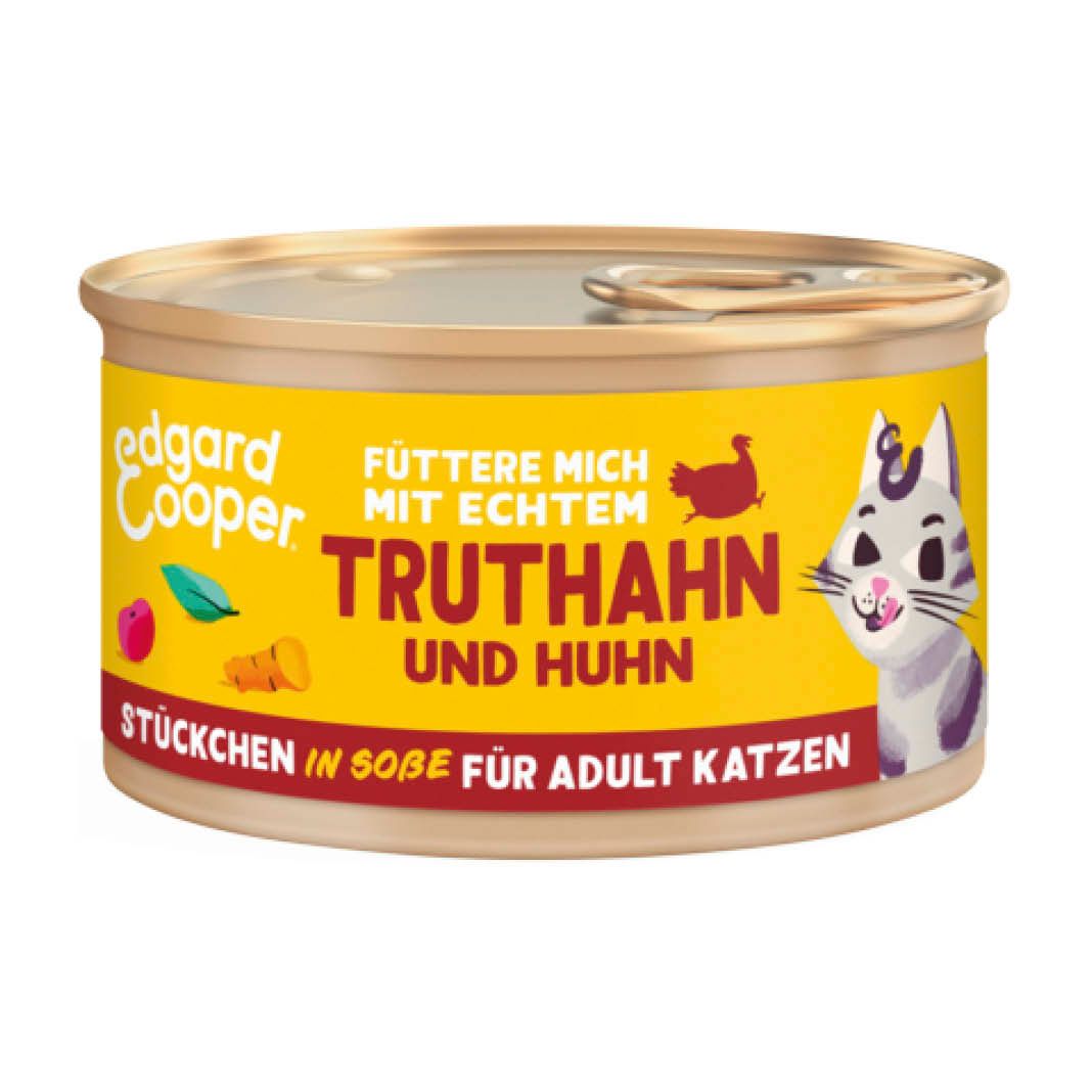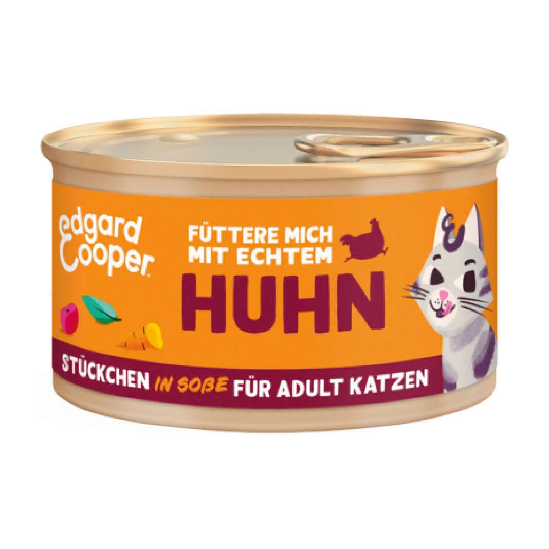 Die leckeren Stückchen in Soße werden die Geschmacksknospen deiner Katze zum Kribbeln bringen. Es ist ein Alleinfuttermittel, ideal für alle Katzen der entsprechenden Altersstufe (auch kastrierten Katzen). Mit saftigen Fleisch-Stückchen und einer zum Pfoten abschlecken leckeren Soße wird deine Katze nach mehr schnurren. Wir sind wählerisch, wenn es um unsere Rezepte für echtes Futter geht, und so haben wir dieses Futter vollgepackt mit Proteinen, die zur Erhaltung gesunder Muskeln beitragen. Außerdem sind keine künstlichen Farbstoffe, Aromen oder Zuckerzusätze enthalten - so kannst du dir sicher sein, dass deine Fellnase in guten Händen ist. All unsere Rezepte sind getreidefrei, leicht verdaulich und halten somit den Ärger vom Bäuchlein deiner Katze fern.