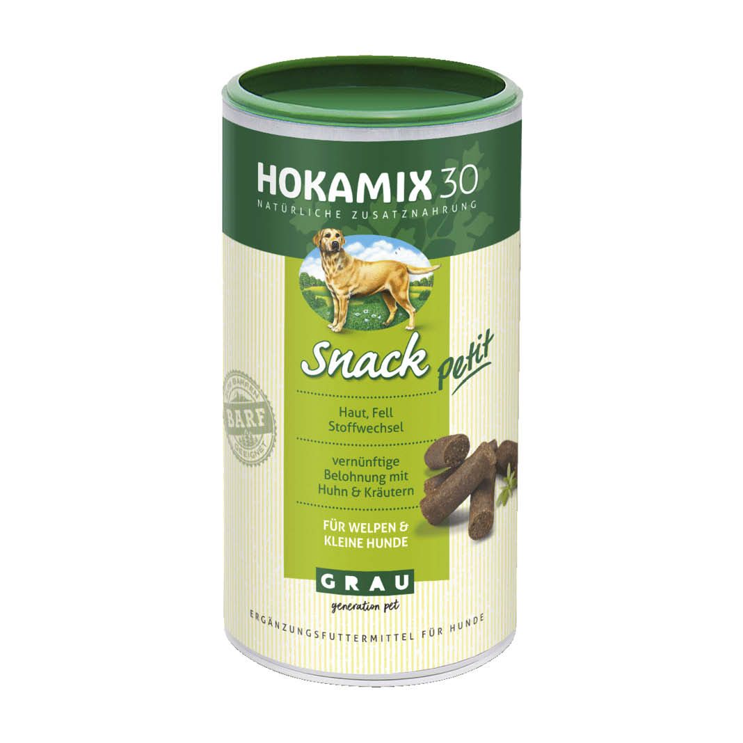 Unser HOKAMIX30 Snack Petit ist ein gesundes Leckerchen für deinen kleinen Liebling – denn es enthält 1 g HOKAMIX30 je Leckerchen. Mit frischem Hühnerfleisch läuft deinem Hund sicher das Wasser im Mund zusammen und du kannst ihm ganz einfach etwas Gutes tun.