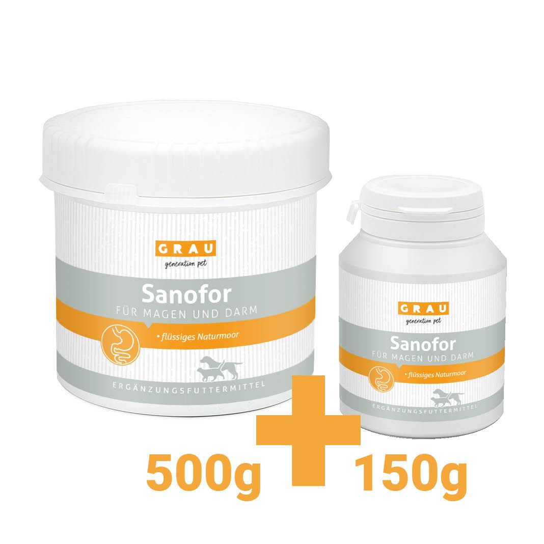Sanofor ist ein Naturmoor und besteht aus organischer Substanz von Urpflanzen. Es sorgt für eine gesunde, vitale Darmschleimhaut und -flora und unterstützt den Magen-Darm-Trakt. Als wahrer Held bei Durchfall und Erbrechen ist es ein Muss in der Hausapotheke für Hund und Katze.