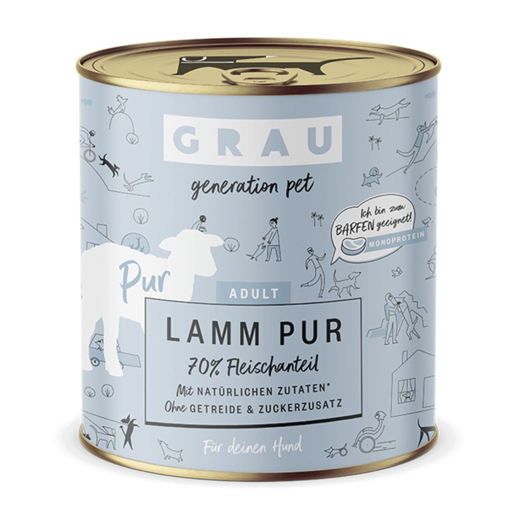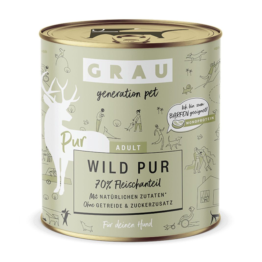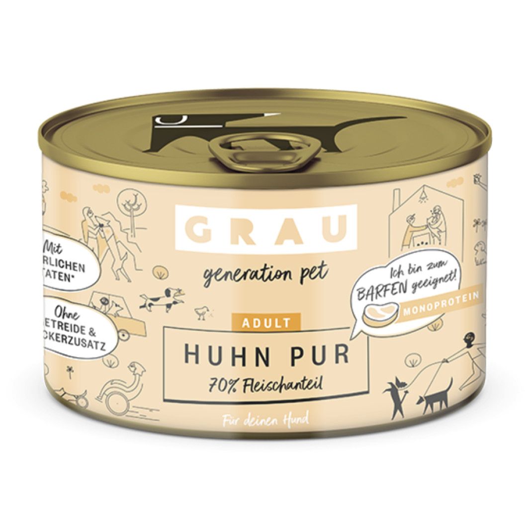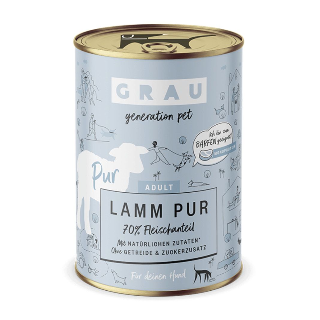 Bei den Pur-Sorten von GRAU kommt dem Familienunternehmen nur eins in die Dose: 70 % frisches Fleisch und das immer nur aus einer einzigen tierischen Proteinquelle. Damit sind sie perfekt geeignet, wenn dein Hund Unverträglichkeiten oder Allergien hat. Auch für ein BARF-Menü, eine selbstgemixte Mahlzeit mit unseren Ergänzungsflocken oder für eine Ausschlussdiät sind sie eine gute Wahl.