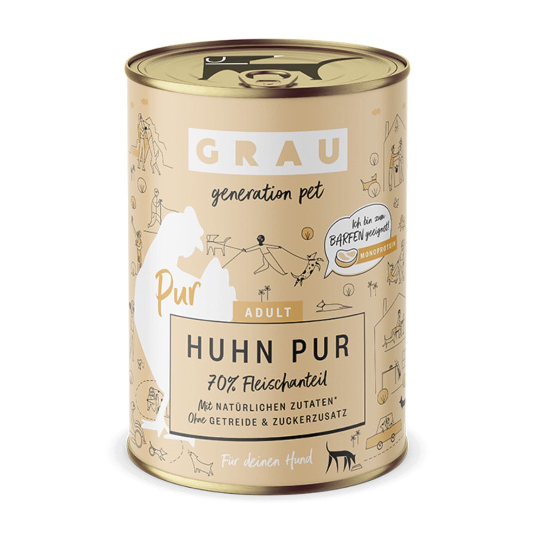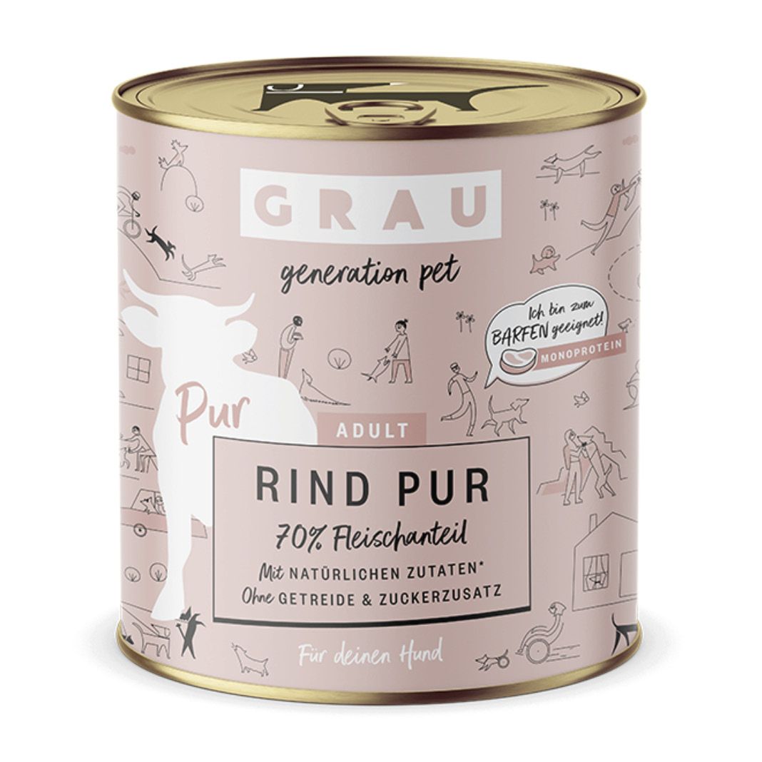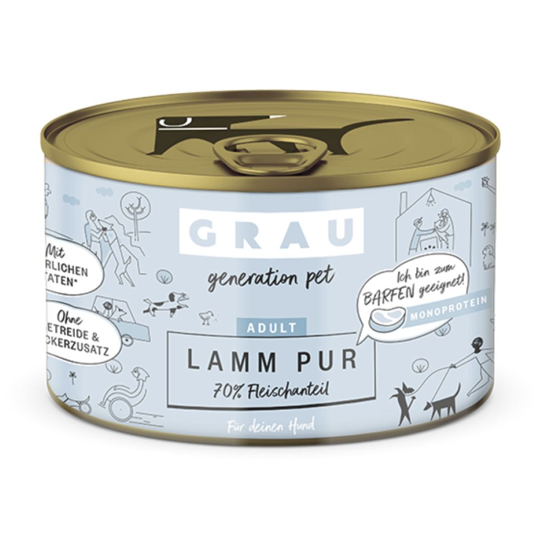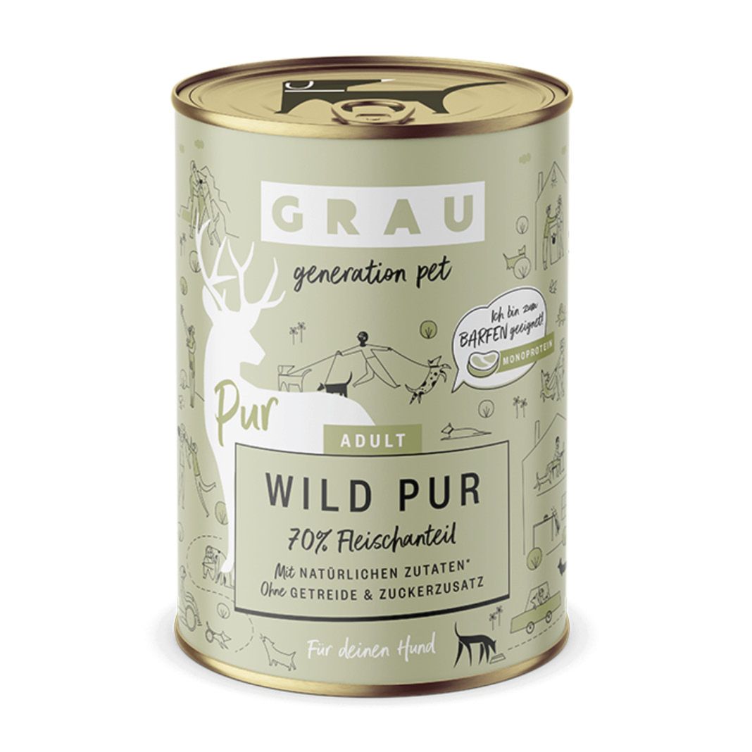 Bei den Pur-Sorten von GRAU kommt dem Familienunternehmen nur eins in die Dose: 70 % frisches Fleisch und das immer nur aus einer einzigen tierischen Proteinquelle. Damit sind sie perfekt geeignet, wenn dein Hund Unverträglichkeiten oder Allergien hat. Auch für ein BARF-Menü, eine selbstgemixte Mahlzeit mit unseren Ergänzungsflocken oder für eine Ausschlussdiät sind sie eine gute Wahl.