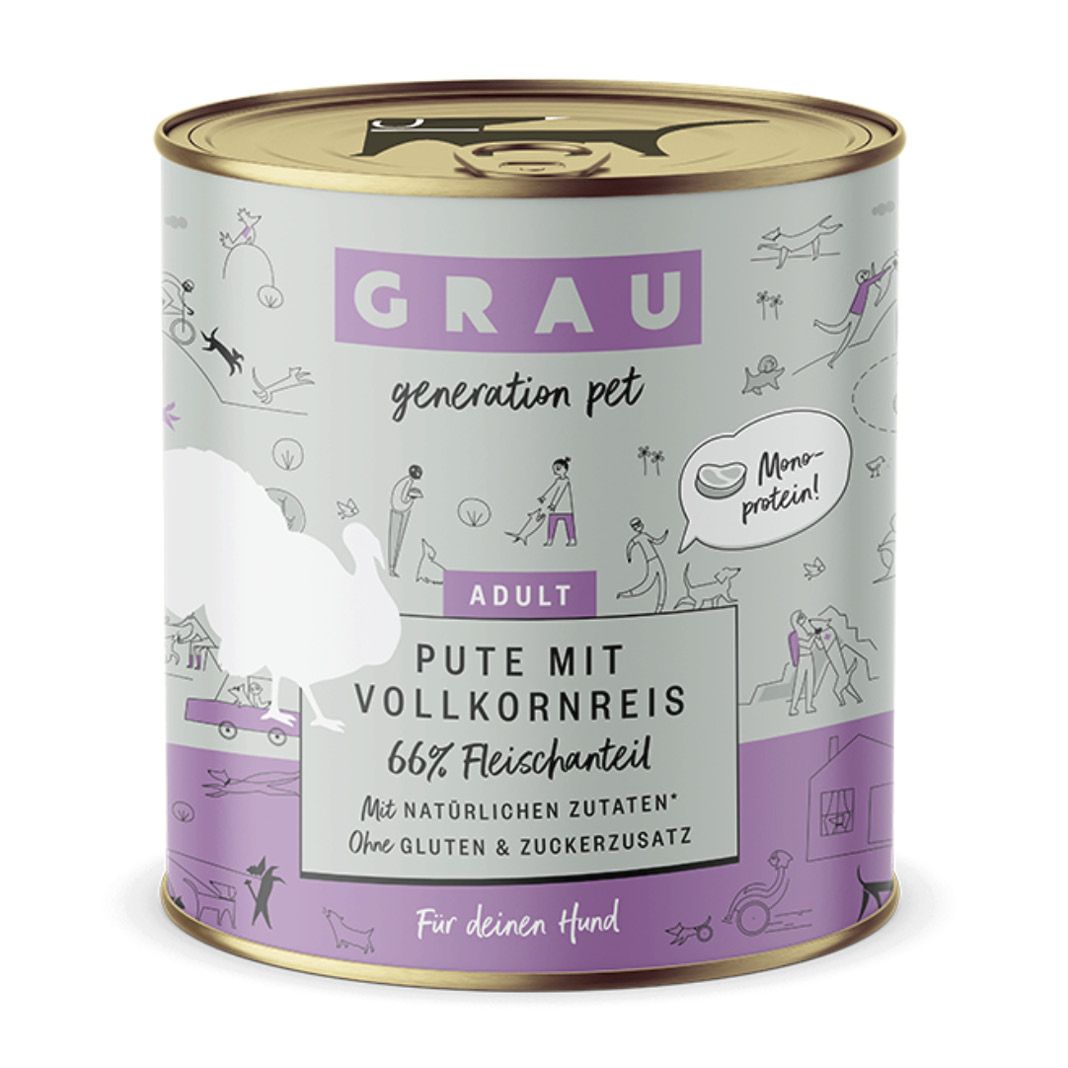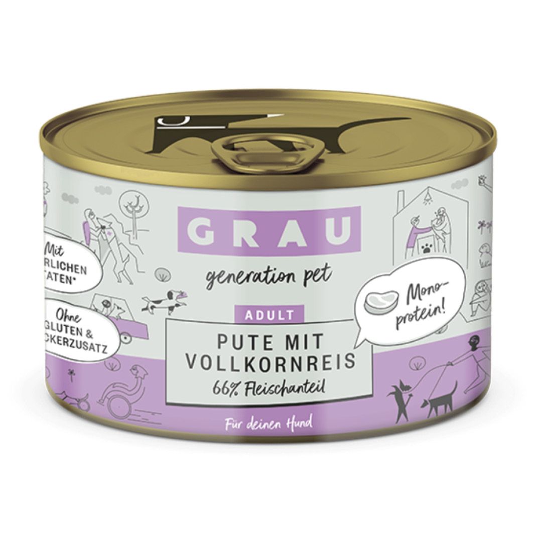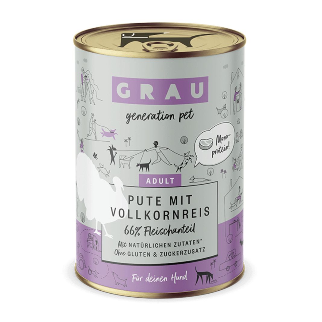 Dieses GRAU Menü ist perfekt für sensible Hunde: Pute als einzige tierische Proteinquelle ist besonders fettarm und damit leicht zu verdauen. Die hochwertigen Kohlenhydrate und Ballaststoffe aus dem Vollkornreis sorgen zudem für das richtige Sättigungsgefühl – und das ganz ohne Gluten.
