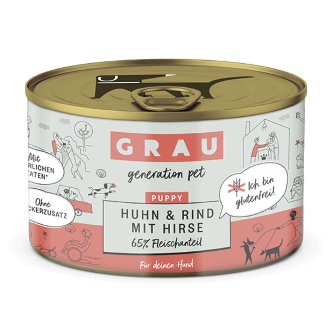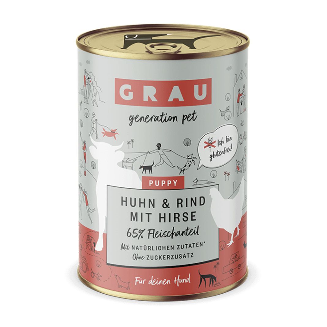 Grau Hund Puppy/Junior mit Huhn & Rind mit Hirse