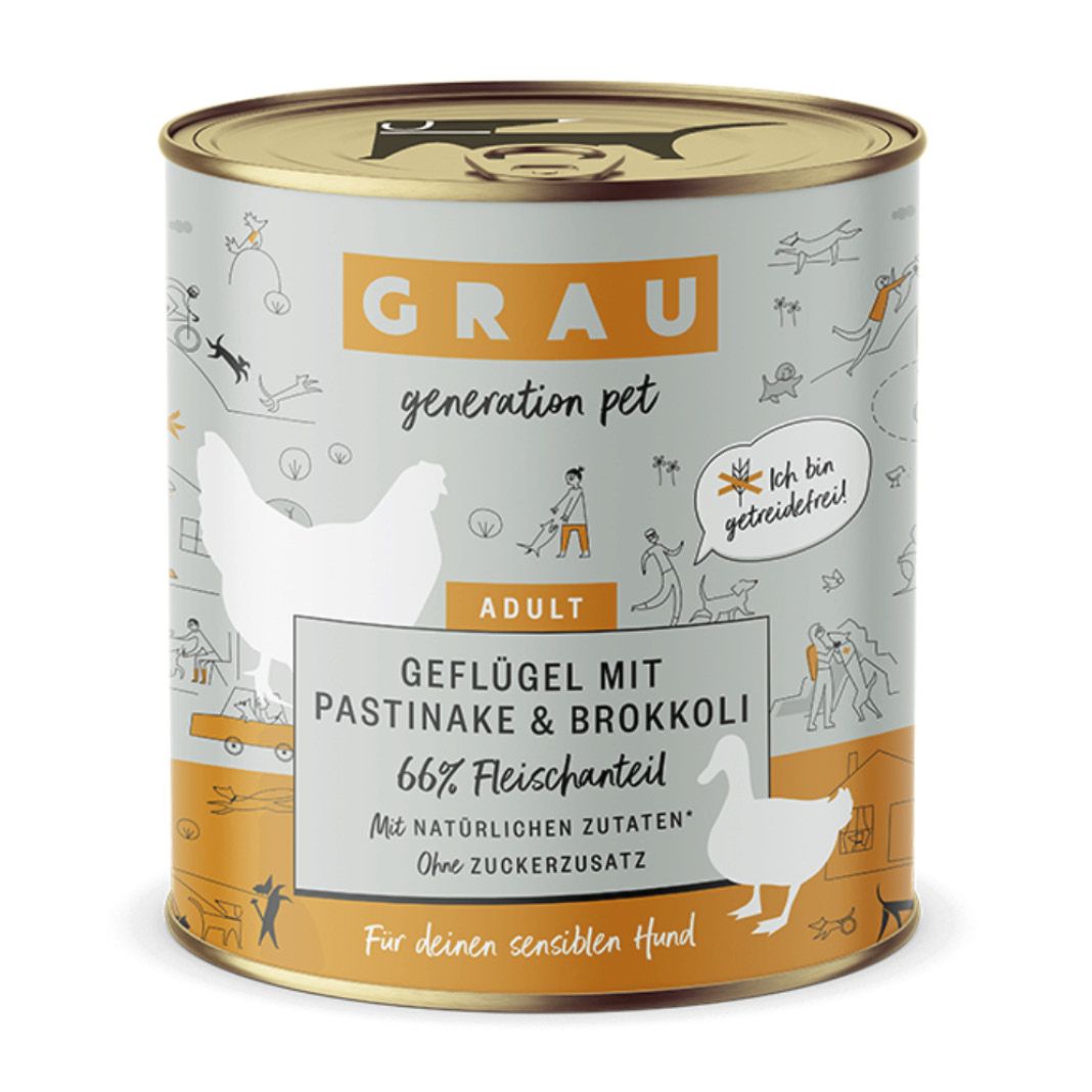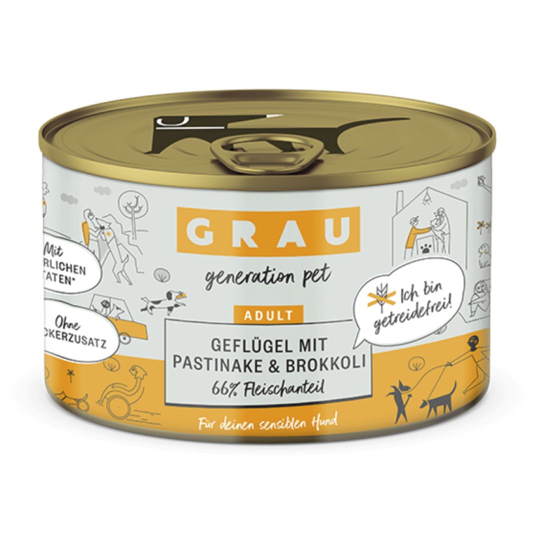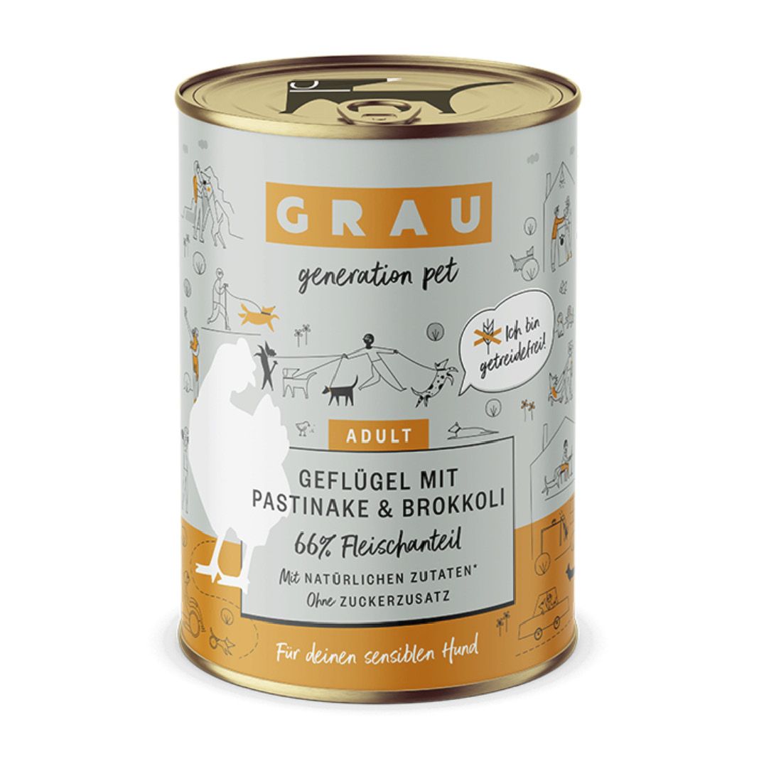 Dieses GRAU Menü ist perfekt für ernährungssensible Hunde: leicht verdauliches Geflügel kombiniert mit vitaminreichem Gemüse ist besonders schonend. Pastinaken enthalten viele Ballaststoffe und versorgen deinen Liebling mit wichtigen Kohlenhydraten und Vitaminen. Brokkoli kommt zudem mit einer Extraportion an Antioxidantien, Vitaminen und Mineralstoffen daher – und ist dabei sehr kalorien- und fettarm.