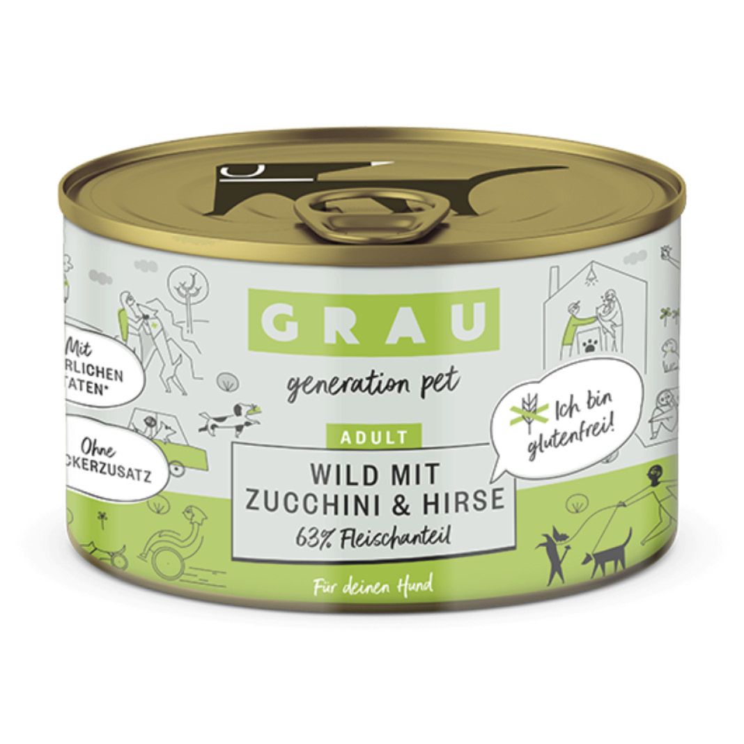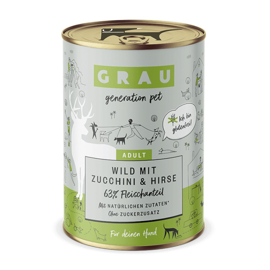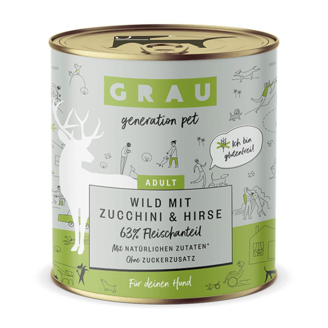 Dieses GRAU Menü ist besonders bei Unverträglichkeiten deiner Fellnase geeignet: Wild als außergewöhnliche Proteinquelle ist gut für sensible Hundebäuche und punktet durch seinen besonderen Geschmack. Zudem enthält es viele B-Vitamine und Spurenelemente wie Eisen und Zink. Zucchini und Hirse geben dem Menü einen weiteren Boost an Mineralstoffen und Vitaminen.