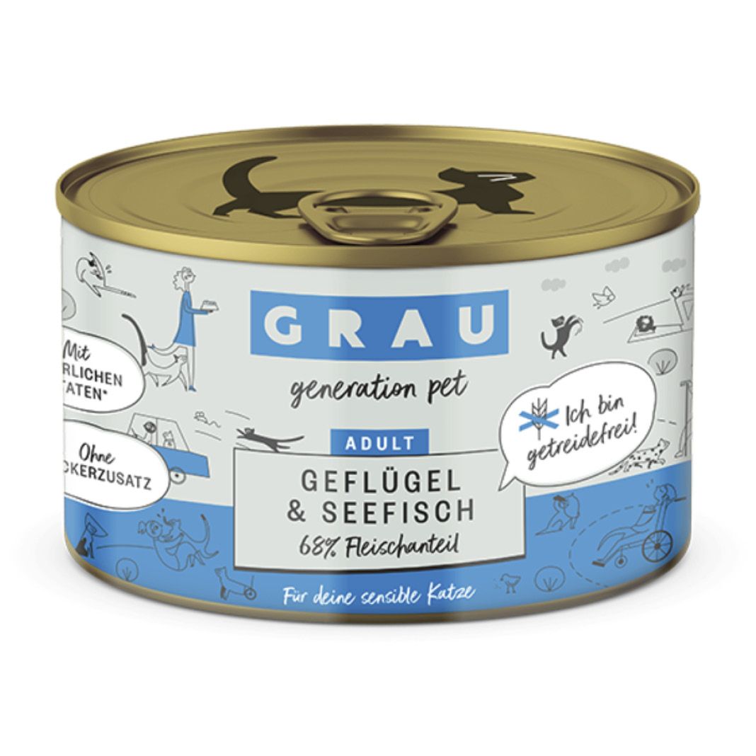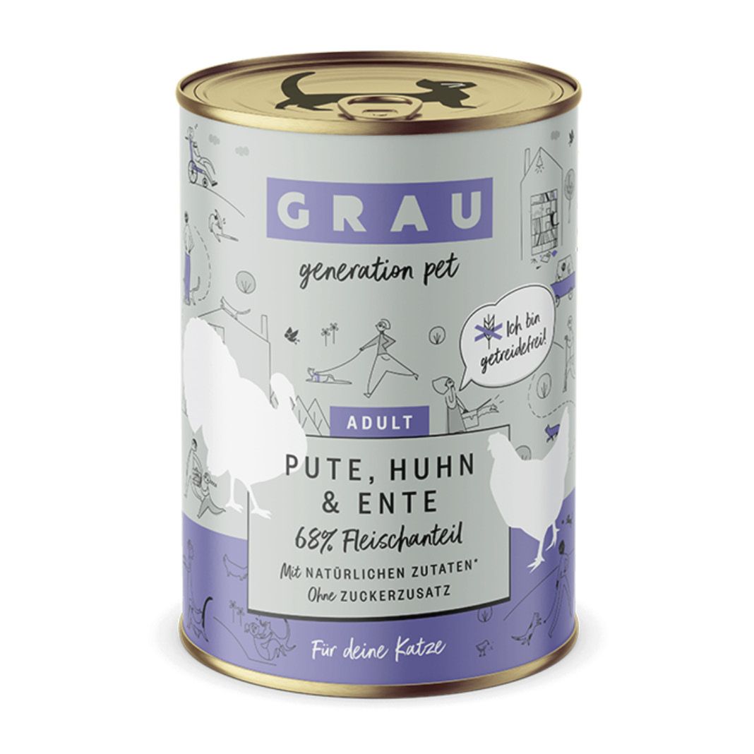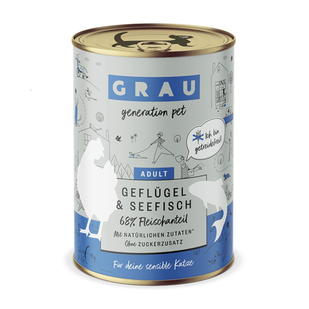 Dieses ausgewogene Menü-Duo von GRAU punktet als getreidefreie Variante mit hohem Fleischanteil. Leicht verdauliches Geflügel in Kombination mit nährstoffreichem Fisch ist besonders schonend und perfekt für ernährungssensible Katzen geeignet.