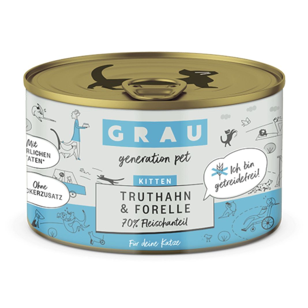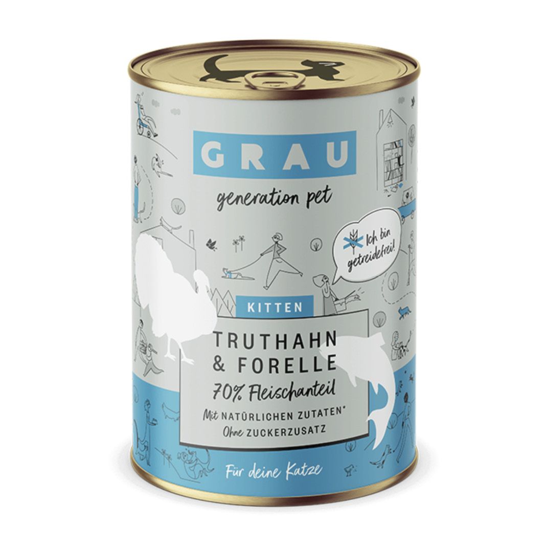 Die Kombination aus Truthahn und Forelle macht dieses GRAU Menü-Duo besonders vitaminreich und begleitet Kitten perfekt durch die Wachstumsphase. Forelle ist besonders schmackhaft und leicht zu verdauen. Der hohe Anteil an natürlichen Omega-3-Fettsäuren und B-Vitaminen macht sie zudem sehr nährstoffreich. Obendrauf gibts Eierschalenpulver als natürliche Quelle für die Extraportion Kalzium, das den erhöhten Bedarf an Kalzium deines Kittens für starke Knochen, Zähne und Krallen abdeckt.