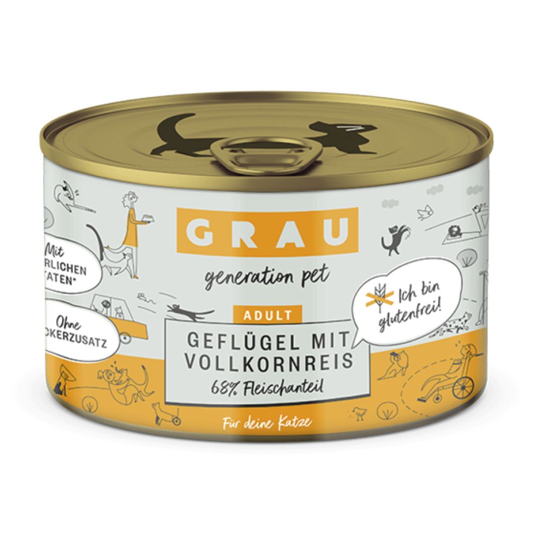 Dieses GRAU Menü ist perfekt für sensible Katzen geeignet, denn Geflügel ist besonders leicht zu verdauen. Zudem liefert es deiner Katze schonend Protein. Vollkornreis enthält hochwertige Kohlenhydrate und Ballaststoffe und sorgt so für das richtige Sättigungsgefühl.