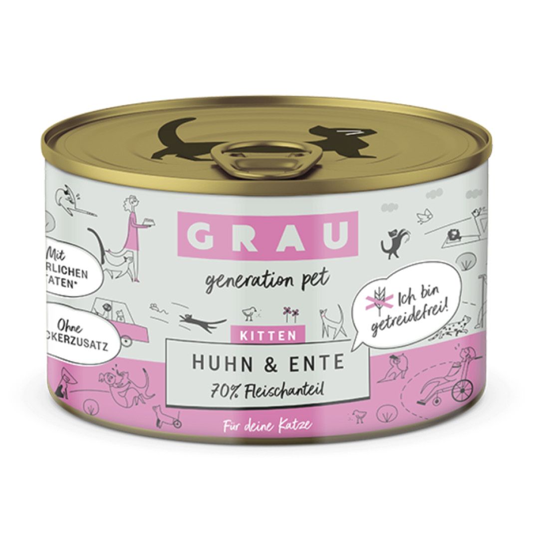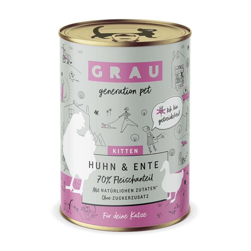 Huhn und Ente sind leicht verdaulich und damit gut verträglich für dein Kitten. Das enthaltene Eierschalenpulver ist eine natürliche Quelle für Kalzium, das den erhöhten Bedarf deines Kitten für starke Knochen, Zähne und Krallen abdeckt. Karotte enthält viele Ballaststoffe, die eine gute Verdauung fördern und überdies zu einer guten Sehkraft beitragen. So ist dieses Futter von GRAU der perfekte Begleiter bis zum Ende der Wachstumsphase.