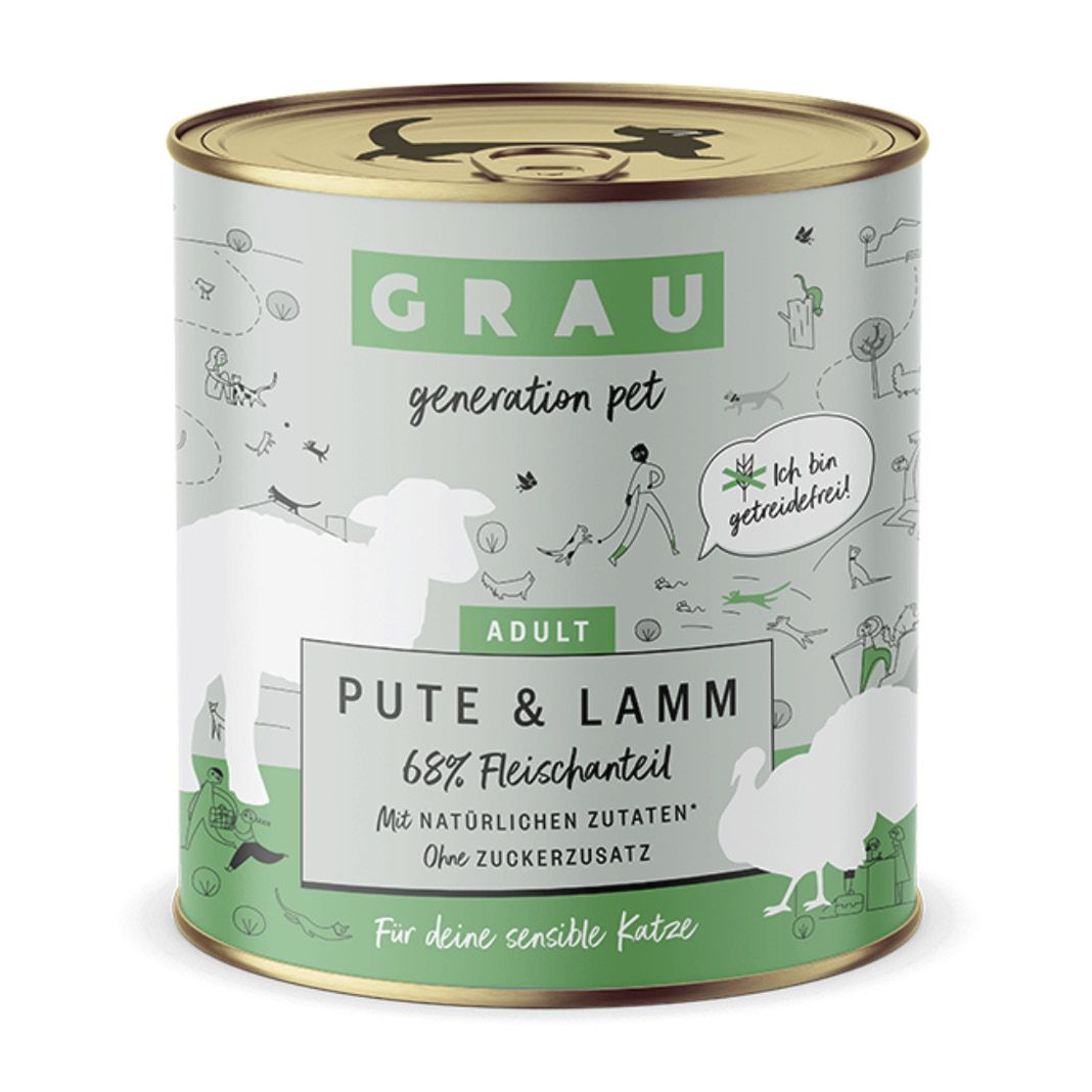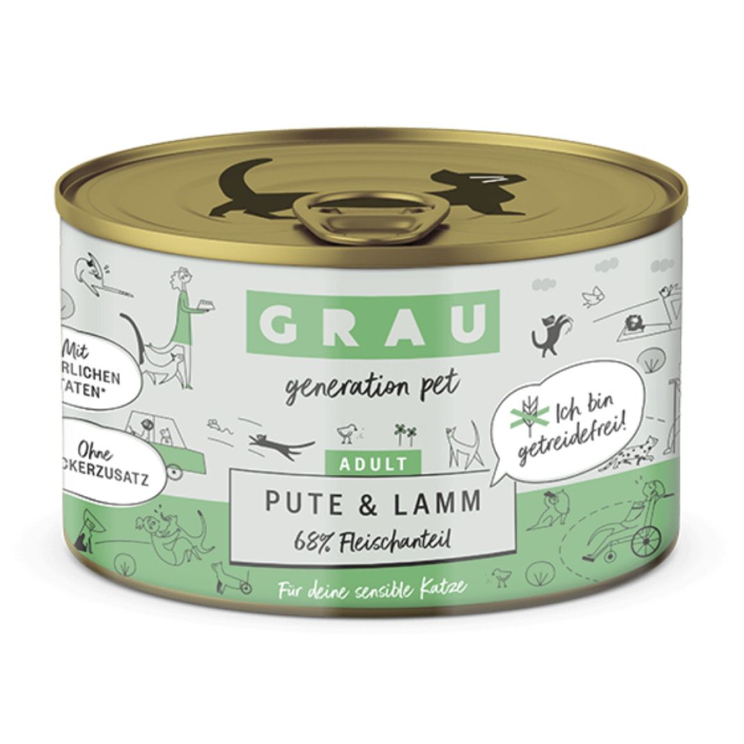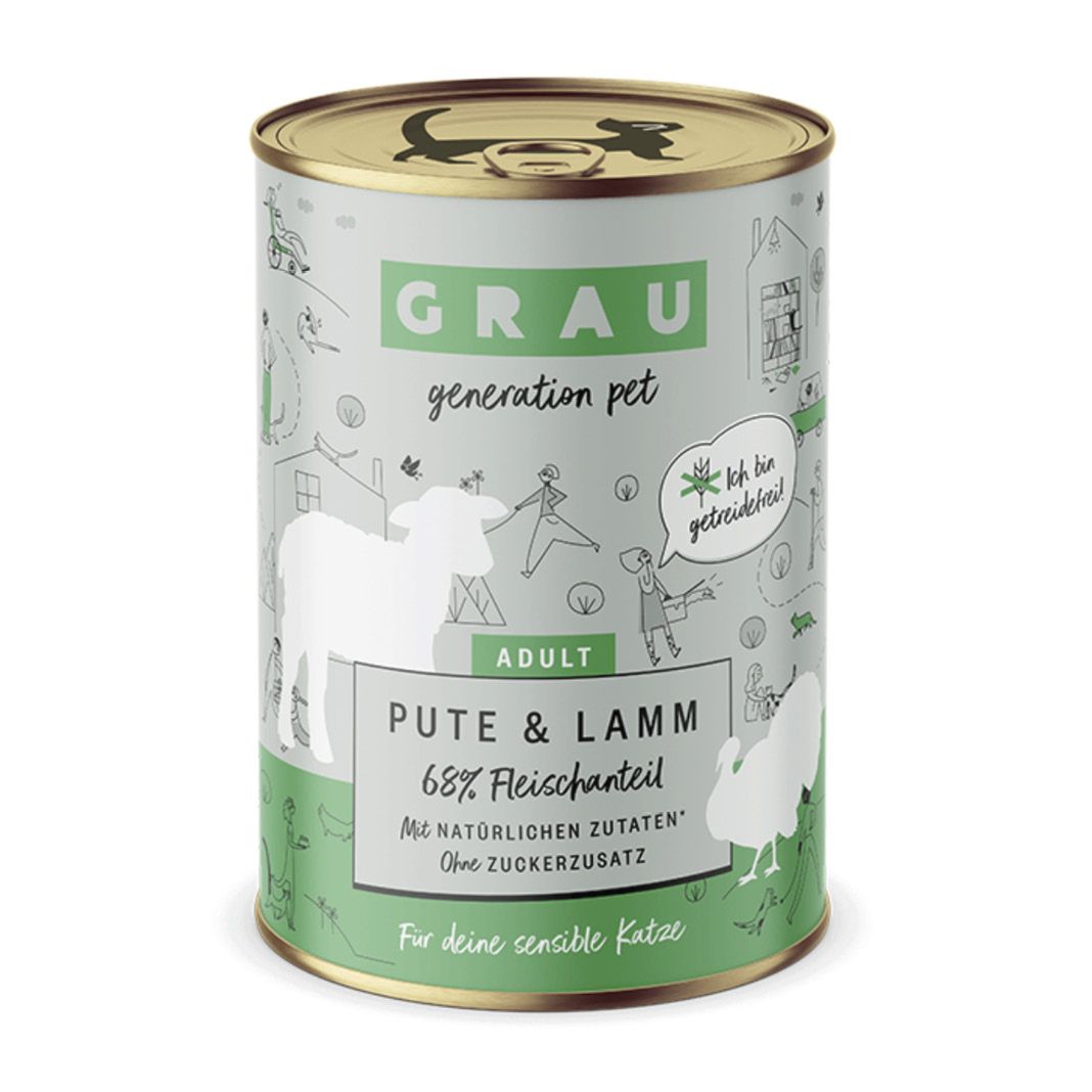 Das getreidefreie GRAU Menü-Duo aus Puten- und Lammfleisch punktet mit hohem Proteingehalt und ist leicht verdaulich. So eignet es sich auch für ernährungssensible Katzen. Lammfleisch enthält viel Vitamin A, B und C und trägt so zur Unterstützung der Gesundheit bei. Putenfleisch ist zudem eine leicht verdauliche und fettarme Fleischquelle.