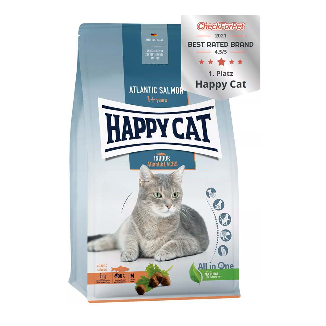 Die leicht bekömmliche Rezeptur mit Atlantik-Lachs und den wertvollen Kräutern, Koriander und Mariendistel, wurde speziell für die Bedürfnisse von Indoorkatzen entwickelt. Natürliche Ballaststoffe unterstützen die Reduzierung von Haarballen und Yucca hilft den Stuhlgeruch zu verringern. Der angepasste Fettgehalt unterstützt eine optimale Gewichtskontrolle. Die leicht verdauliche Rezeptur ist auch für sensible Hauskatzen geeignet. Auf Basis unseres Happy Cat Natural Life Concept® haben unsere Ernährungsexperten eine spezielle Vitalitätsformel entwickelt, die auf natürliche Art und Weise die fünf wichtigsten Bedürfnisse einer Katze abdeckt. Ernährungsphysiologisch bestätigt sorgt es für eine geregelte Verdauung, stärkt das Immunsystem, unterstützt den Harntrakt, fördert die Herzgesundheit und ist gut für Haut & Fell.