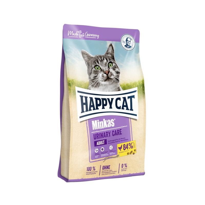 Happy Cat Minkas Urinary Care mit Geflügel ist eine schonende und ausgewogene Komplettnahrung für ausgewachsene Katzen. Hochwertiges, leicht verdauliches Protein und reduzierte Magnesium- und Phosphor-Gehalte können eine Absenkung des Harn-pH-Wertes erzielen und dadurch vorbeugend die Harnwege entlasten. Hergestellt in Deutschland unter strenger Qualitätskontrolle.