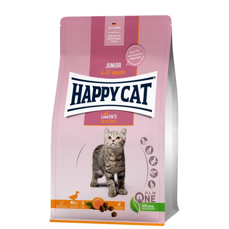 *) Je nach Vorliebe (Krokettengröße) der Katze kann ab dem 12. Monat von Happy Cat Junior Land-Ente auf ein Happy Cat Adult Produkt umgestellt werden.