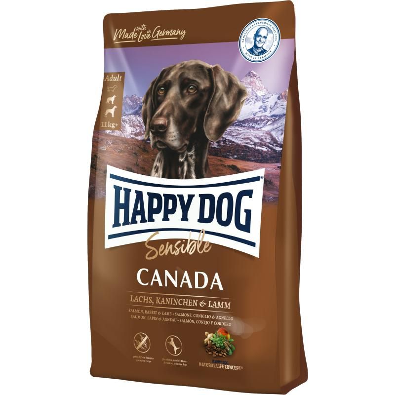 Nicht nur aktive, sensible Vierbeiner werden sich über die Komposition mit feinem Lachs, leckerem Kaninchen und leicht verdaulichem Lamm freuen. Die getreidefreie Rezeptur mit sorgfältig ausgewählten Zutaten ist besonders gut verträglich für deinen Liebling und daher auch ideal geeignet für anspruchsvolle und ernährungssensible Feinschmecker mittlerer und großer Rassen. Sonnenblumen- und Rapsöl dienen als gut verfügbare Energiequelle und neuseeländische Grünlippmuschel unterstützt die Gelenke. Mit unseren Happy Dog Supreme Sensible Produkten fütterst du beste Qualität “Made in Germany“ – hergestellt in unserem Familienbetrieb unter strengsten Qualitätskontrollen.