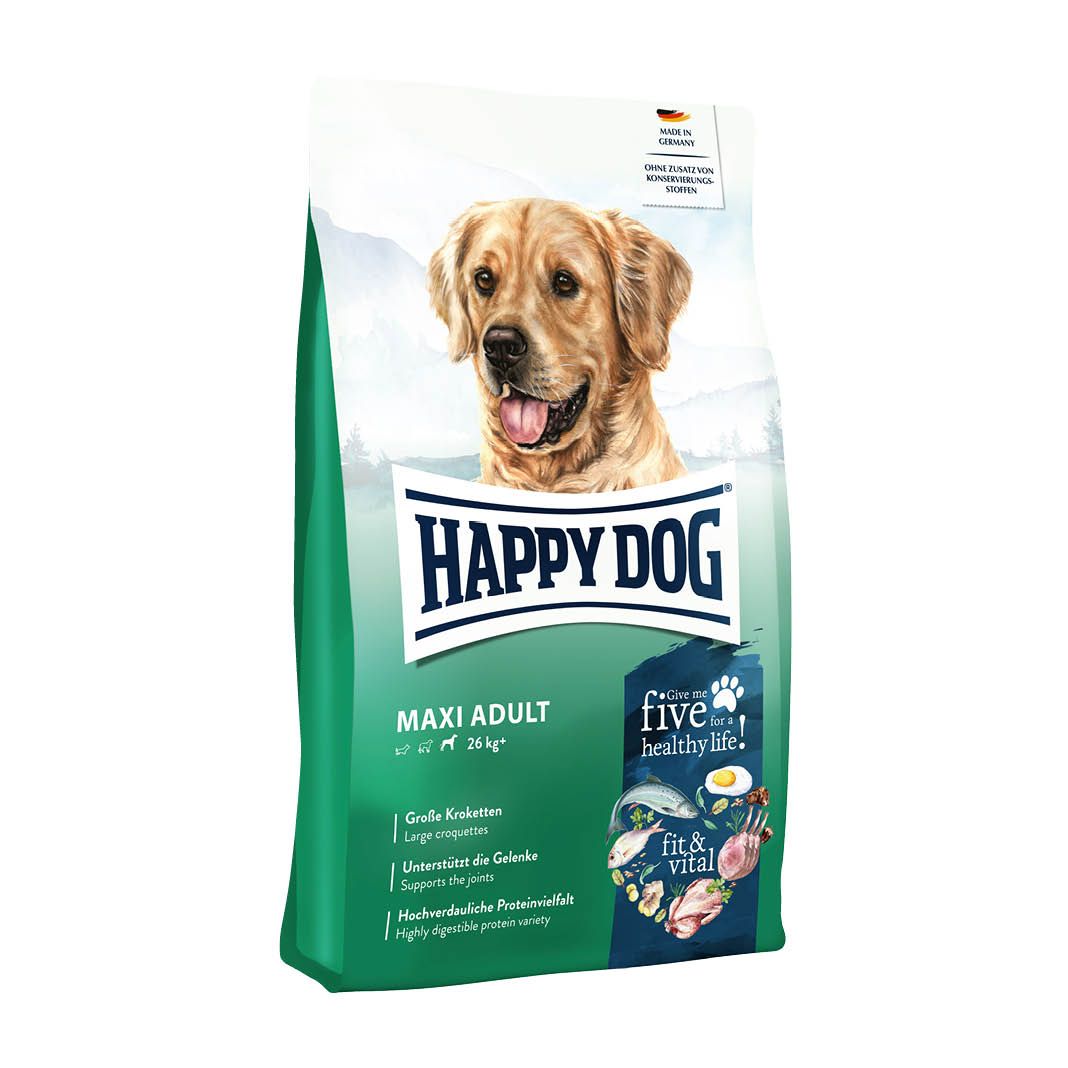 Happy Dog fit & vital Maxi Adult ist perfekt abgestimmt auf die Bedürfnisse ausgewachsener, großer Hunde ab 26 kg. Die ausgewogene und leckere Vollnahrung basiert auf dem einzigartigen Happy Dog Natural Life Concept® und ist mit wertvoller Neuseeland-Muschel angereichert. Wichtige Omega-3- und Omega-6 Fettsäuren sind gut für Haut und Fell. Die sehr bekömmliche Rezeptur eignet sich perfekt für normalaktive Hunde ab 26 kg.
