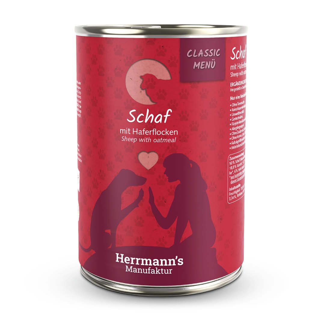 50 % Schaf (Muskelfleisch, Herz, Lunge, Leber), 18,80 % Karotte*, 12,70 % Kochsud*, 7,00 % Pastinake*, 6,00 % Haferflocken*, 5,00 % Sellerie*, 0,50 % Leinöl* *aus kontrolliert biologischer Erzeugung, davon Gesamtanteil 50,00 %.