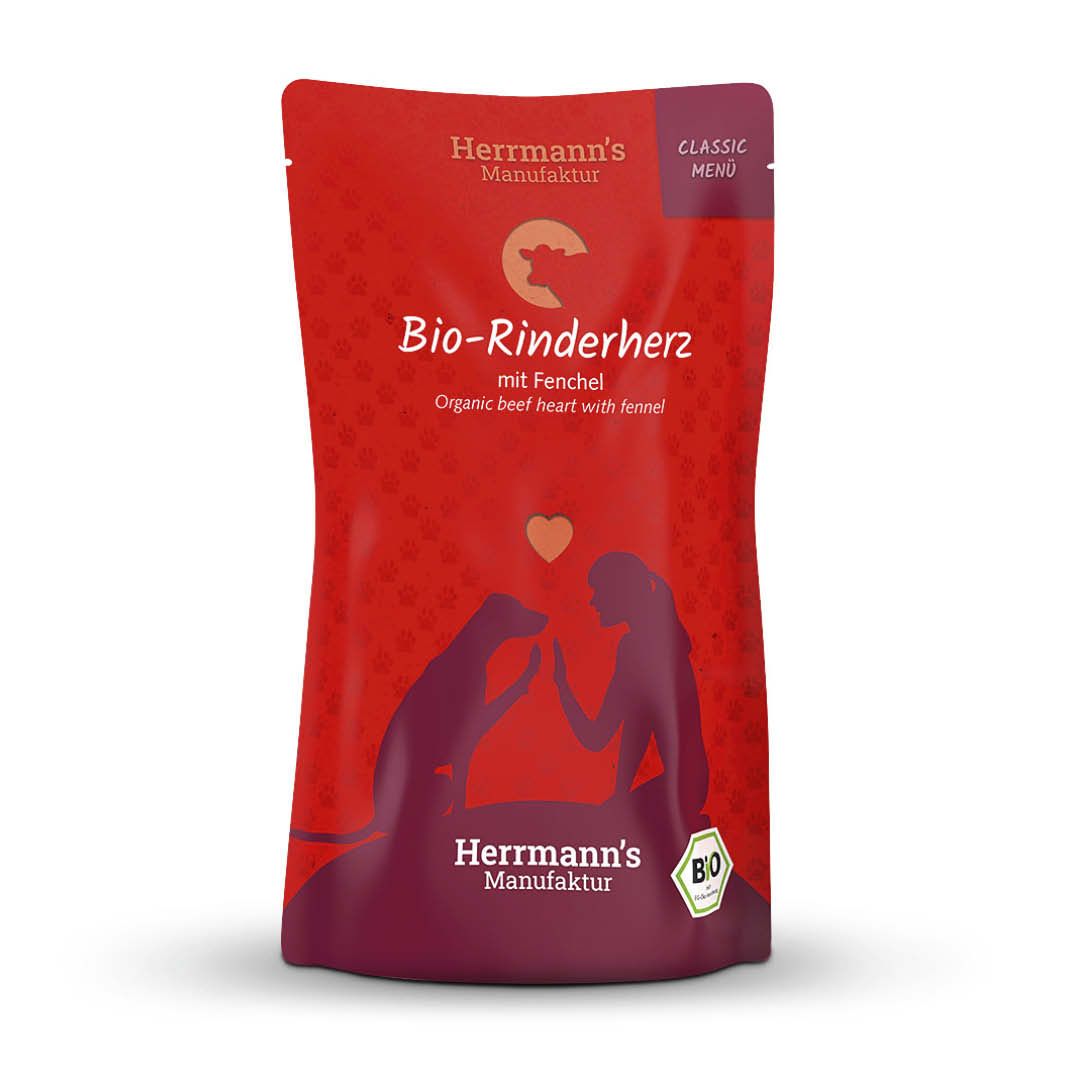 50,00 % Rinderherzen*, 25,00 % Karotte*, 23,50 % Kochsud*, 1 % Fenchel*, 0,50 % Leinöl* *aus kontrolliert biologischer Erzeugung.