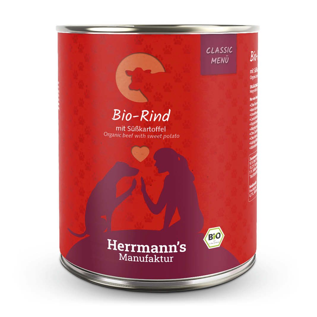 50,00 % Rind* (Muskelfleisch, Herz, Lunge, Leber), 15,20 % Kochsud*, 14,30 % Zucchini*, 12,00 % Kürbis*, 5,00 % Süßkartoffel*, 3,00 % Fenchel*, 0,50 % Leinöl* *aus kontrolliert biologischer Erzeugung.