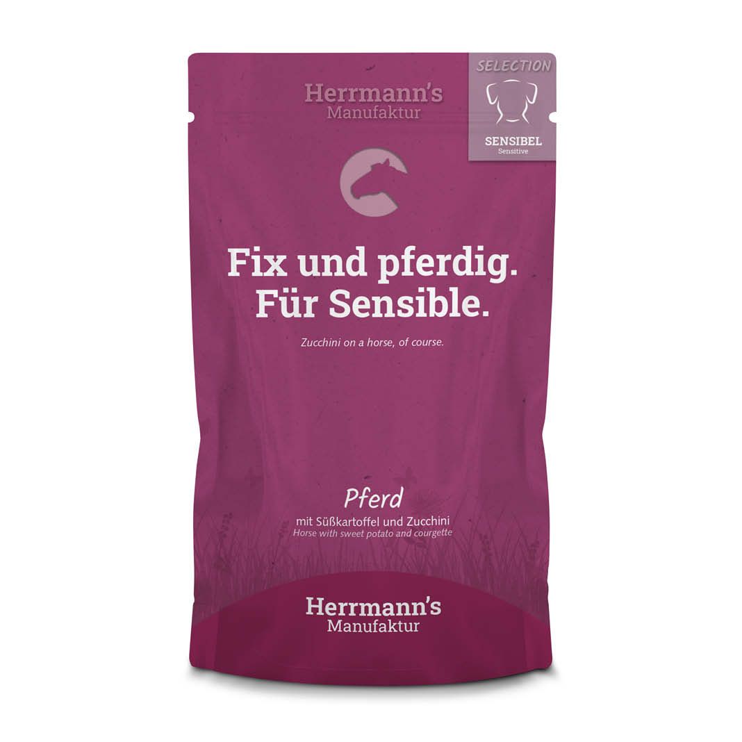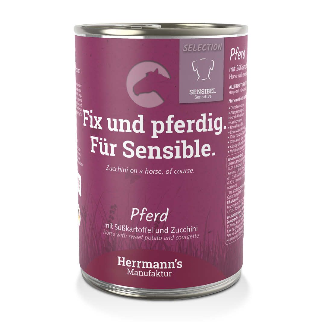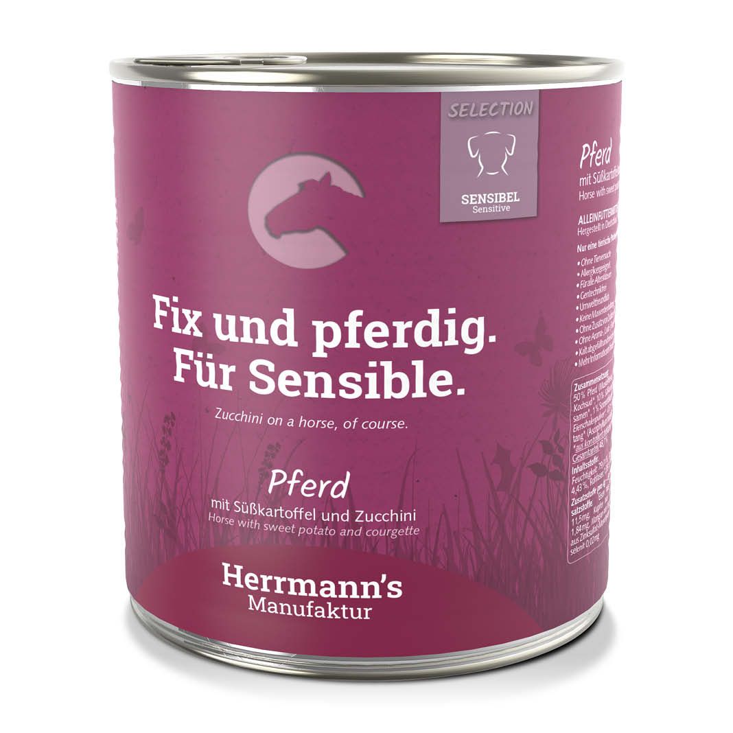 50 % Pferd (Muskelfleisch), 18 % Zucchini*, 17,75 % Kochsud*, 10 % Süßkartoffel*, 1 % Bierhefe, 1 % Flohsamen*, 1 % Sonnenblumenöl*, 0,5 % Leinöl*, 0,35 % Eierschalenpulver*, 0,3 % Lebertran, 0,1 % Knotentang* (Ascophyllum nodosum) * aus kontrolliert biologischer Erzeugung, davon Gesamtanteil 48,7 %