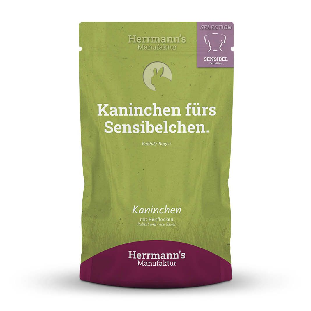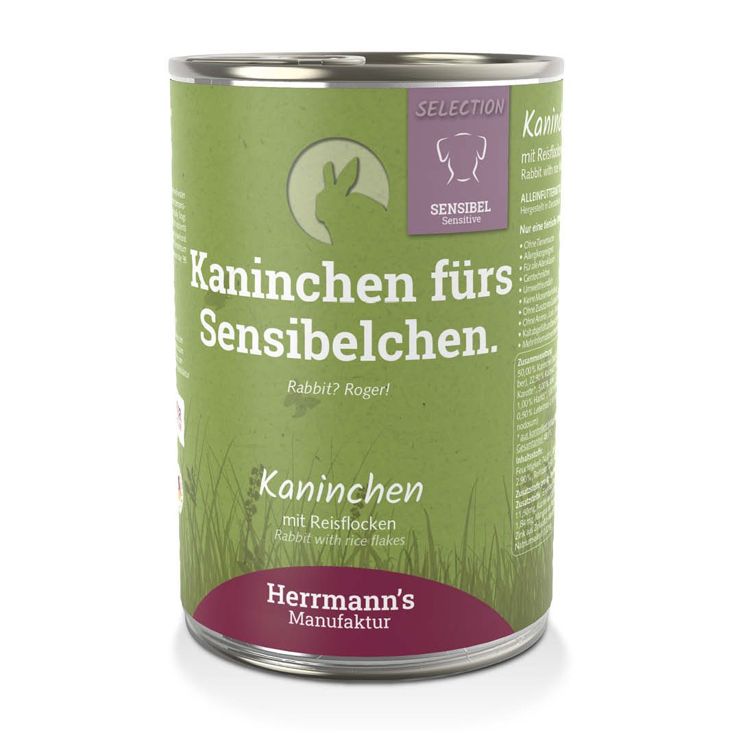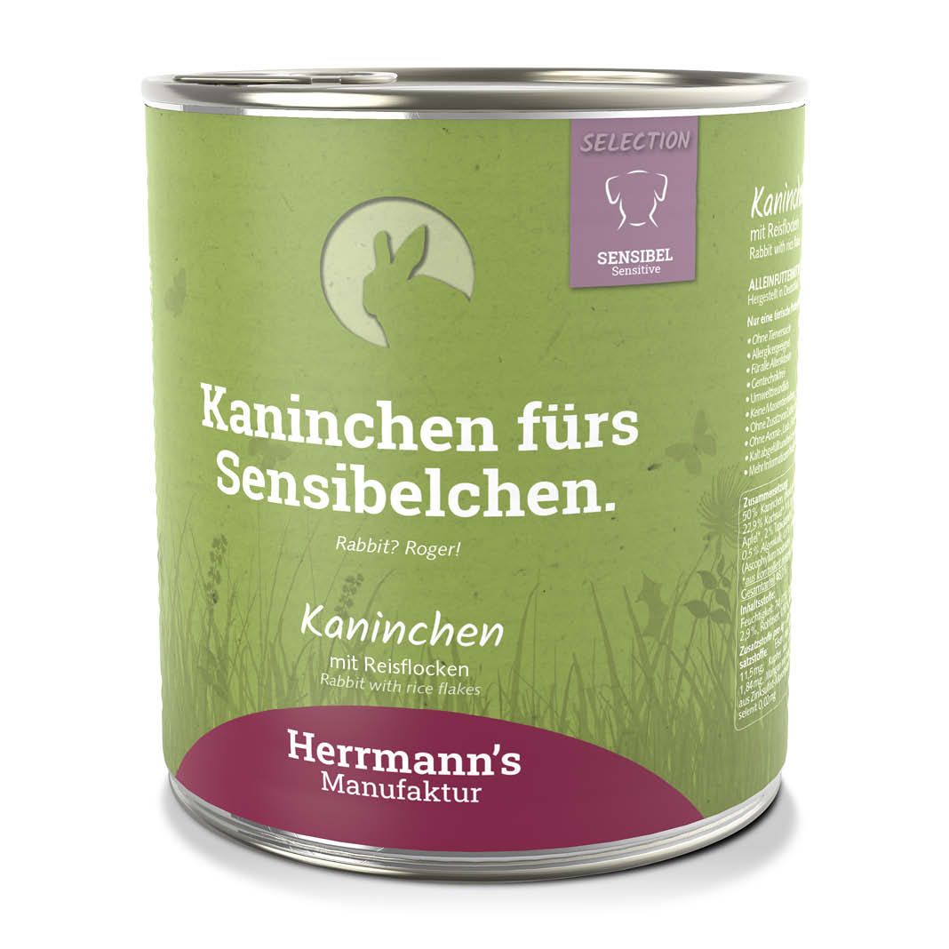 50 % Kaninchen (Muskelfleisch, Herz, Lunge, Leber), 22,9 % Kochsud*, 9 % Reisflocken*, 8 % Karotte*, 5 % Apfel*, 2 % Tapiokamehl*, 1 % Hanföl*, 1 % Bierhefe, 0,5 % Algenkalk, 0,5 % Lebertran, 0,1 % Knotentang* (Ascophyllum nodosum) * aus kontrolliert biologischer Erzeugung, davon Gesamtanteil 48,0 %
