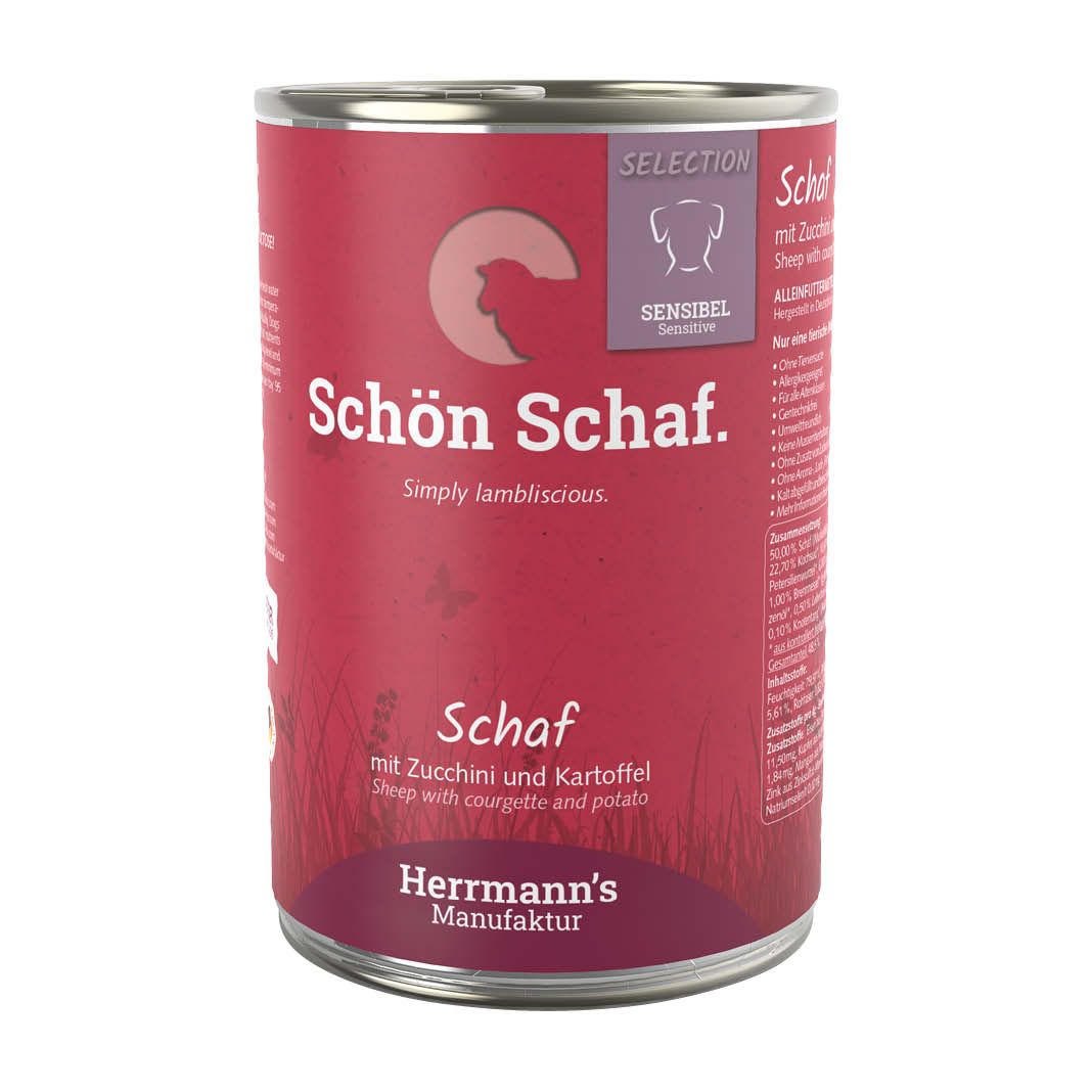 50 % Schaf (Muskelfleisch, Lunge, Herz, Leber), 22,7 % Kochsud*, 10 % Zucchini*, 8 % Petersilienwurzel*, 6 % Kartoffel*, 1 % Bierhefe, 1 % Brennnessel* (getrocknet), 0,5 % Nachtkerzenöl*, 0,5 % Lebertran, 0,2 % Eierschalenpulver*, 0,1 % Knotentang* (Ascophyllumnodosum) * aus kontrolliert biologischer Erzeugung, davon Gesamtanteil 48,5 %
