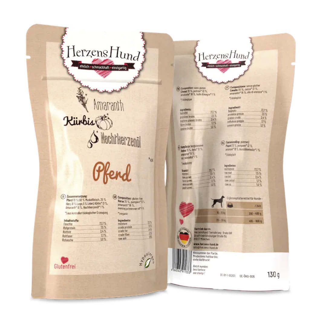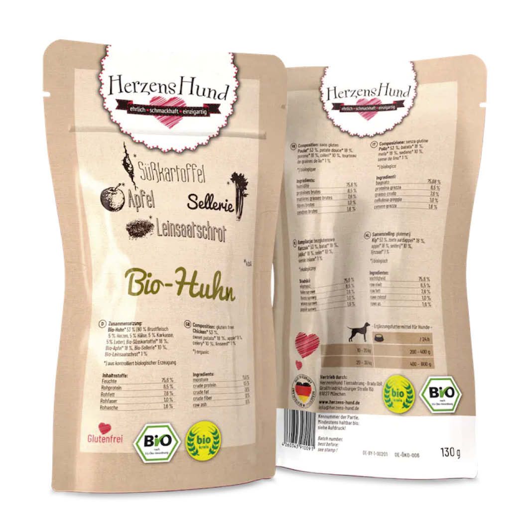 Herzenshund verzichtet bewusst auf synthetische Zusätze. Daher deklarieren wir unser Futter als Ergänzungsfuttermittel entsprechend den gesetzlichen Vorgaben.