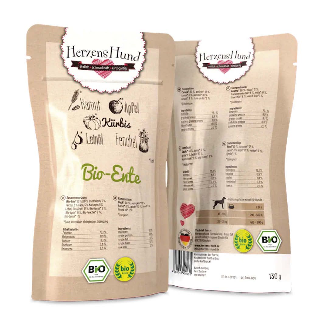 HerzensHund Bio-Ente mit Bio-Gemüse - getreidefrei
