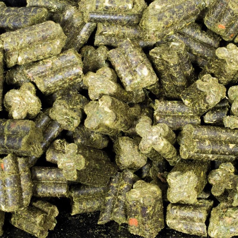 Aufwuchs von Dauergrünland der Alpenvorlandwiesen (bestehend unter anderem aus Timothygras, Fuchsschwanz, Glatthafer, Knaulgras, Flaumhafer, Wiesenrispe, Rotklee, Scharfer Hahnenfuß, Ruchgras, Wolliges Honiggras, Goldhafer, Schmalblättrige Wicke, Hopfen-Schneckenklee, Löwenzahn, Spitzwegerich, Wiesen-Schlüsselblume, Margerite, Gänseblümchen, Große Bibernelle, Wiesenlabkraut, Pastinake, Sauerampfer, Gamander-Ehrenpreis, Gewöhnliches Hornkraut, Deutsches Weidelgras, Weiche Trespe, Vogelwicke, Zaunwicke, Dreizähniges Knabenkraut, Knolliger Hahnenfuß, Kleiner Klappertopf, Wiesenkerbel, Schafgarbe), Erbsenflocken, Ackerbohnenflocken, Karotten, Pastinaken, Leinsaat, Schwarzkümmel, Pfefferminze, Brennnessel, Melisse, rote Beete, Petersilie, Apfel, Fenchelsaat, Löwenzahn 0,3%, Kamillenblüten