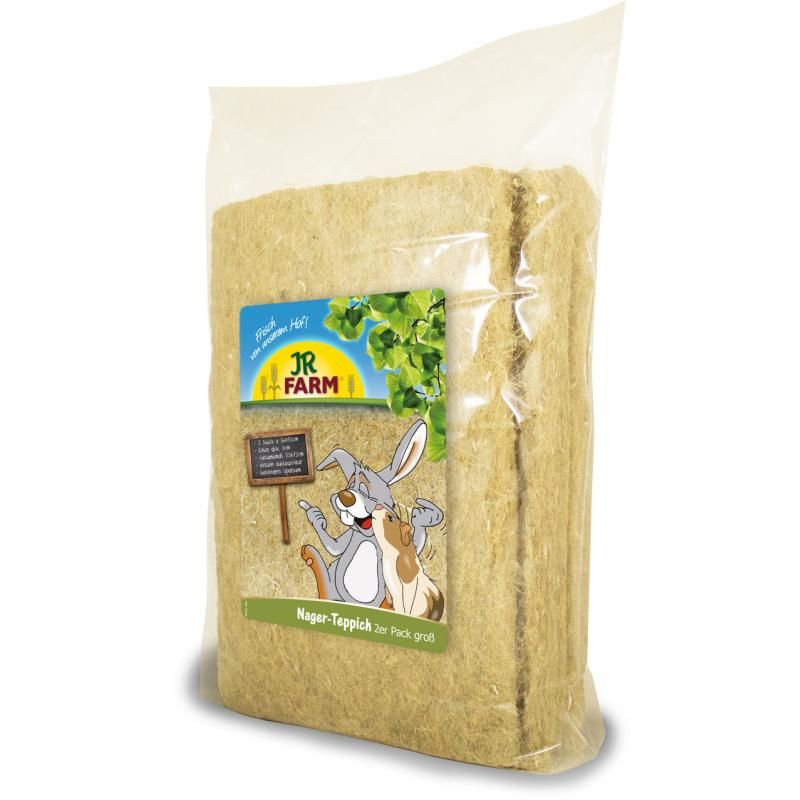 JR FARM Nager-Teppich 2er Pack groß Der Nager-Teppich aus natürlichen Hanffasern ist der ideale Bodenbelag für das Nagerheim. Mit einer extra dicken Stärke von 3 cm ist er besonders wärmeisolierend, kuschelig und kann sogar zum Tunnelbau genutzt werden. Durch die spezielle Struktur der Hanffaser ist der Teppich staubfrei, einfach zu handhaben und hervorragend für Allergiker geeignet. Die beiden Matten können einzeln ausgetauscht werden, so dass der JR FARM Nager-Teppich 2er Pack im Vergleich zu herkömmlichen Hanfmatten besonders sparsam eingesetzt werden kann. 100% Naturmaterial, natronfrei und komplett kompostierbar.