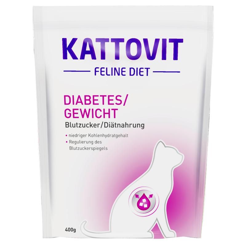 Kattovit Feline Diet - DIABETES/GEWICHT wurde speziell für übergewichtige Katzen entwickelt. Energiereiche Kohlenhydrate sind durch hochwertige Proteine ersetzt worden. Das Futter ist mit L-Carnitin angereichert worden. Dadurch soll sich der Stoffwechsel verändern und somit zu einer Gewichtsreduktion beitragen. Der hohe Proteingehalt soll den Muskelerhalt fördern und gleichzeitig die Kalorienaufnahme verringern. L-Carnitin kann den Abbau von Fettreserven unterstützen. Kattovit Feline Diet - DIABETES/GEWICHT enthält einen niedrigen Kohlenhydratgehalt mit schneller Glucosefreisetzung und einen hohen Rohfasergehalt.
